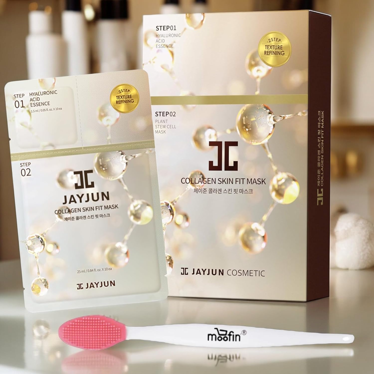 Collagen Skin Mask, Bundled With Nose Cleaning Brush, Skin Mask Hydrating Firming 2-Step Skincare, Infused With Hyaluronic Acid Collagen Facial Mask, Soothes Nourishes [Pack Of 1]