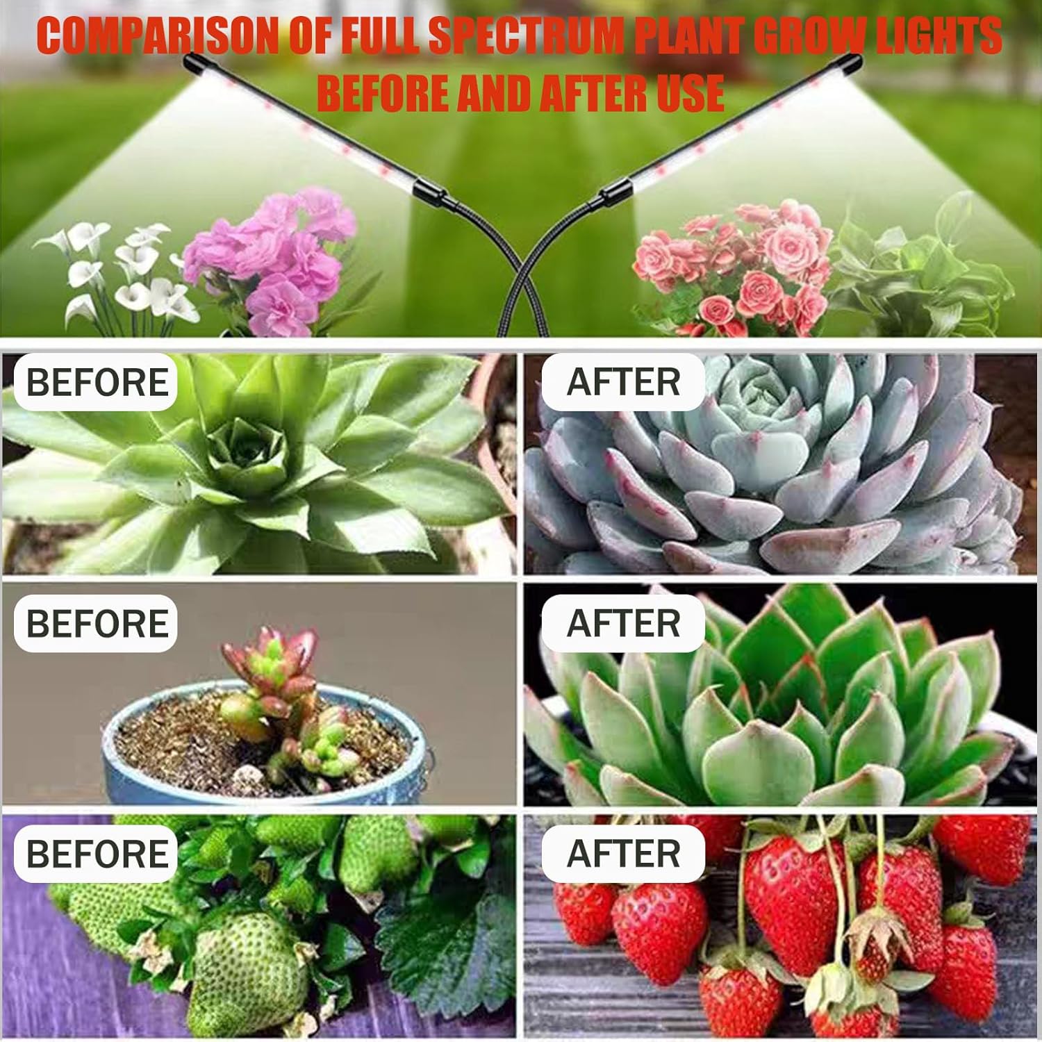 After One Month of Use our LED grow lamp , the Succulents grow very fast ,and the leaves are more colorful .This proves that our plant lamp is truly effective for plant growth and development .