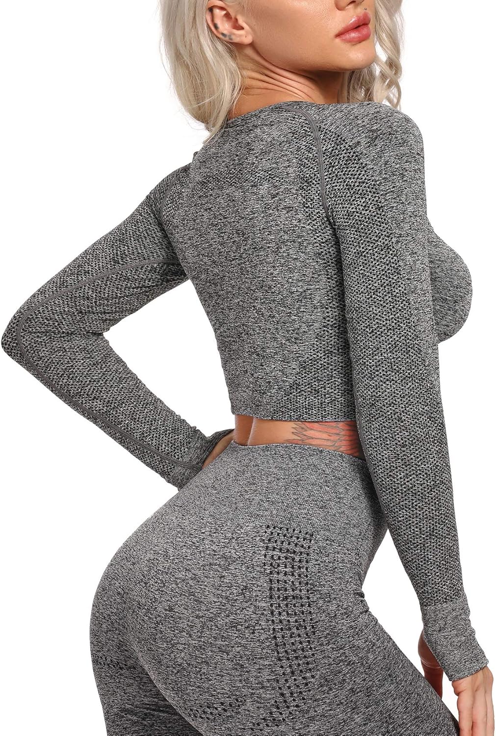 SEASUM Women Workout Crop Top Seamless Shirt Athletic Long Sleeve Fitness Tight Tee