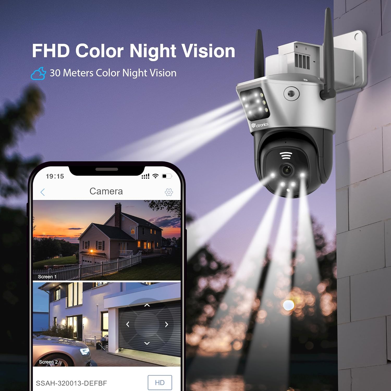 【Dual Band WiFi and Remote Access】 The ctronics outdoor security camera supports 2.4GHz and 5GHz WiFi frequencies, providing a more stable network connection and higher data speeds. This dual lens outdoor camera supports 24/7 recording and stores videos on a micro SD card (up to 128GB, not included). You can view the surveillance screen anytime, anywhere from your smartphone or computer.