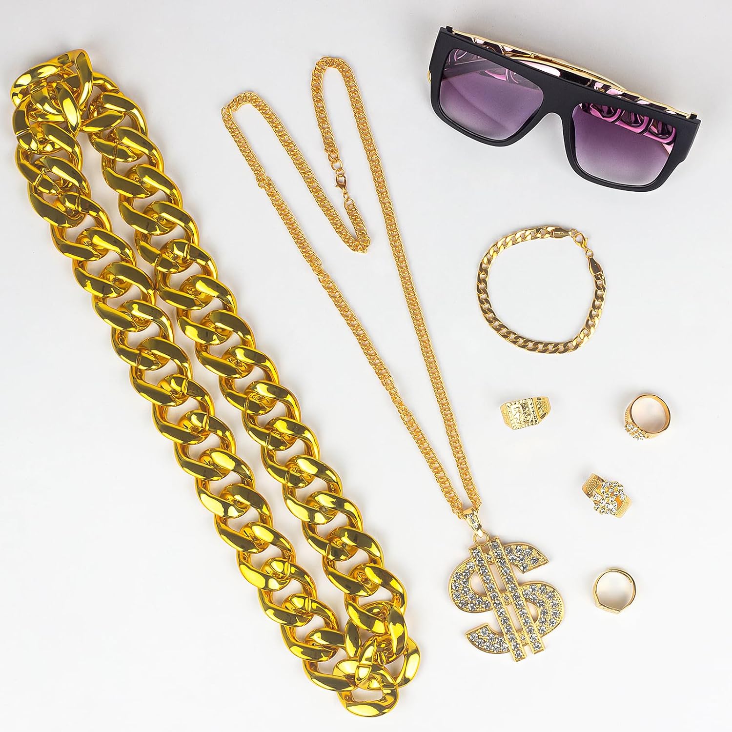 10 PCS Hip Hop Costume Kit 80s 90s Rapper Accessories