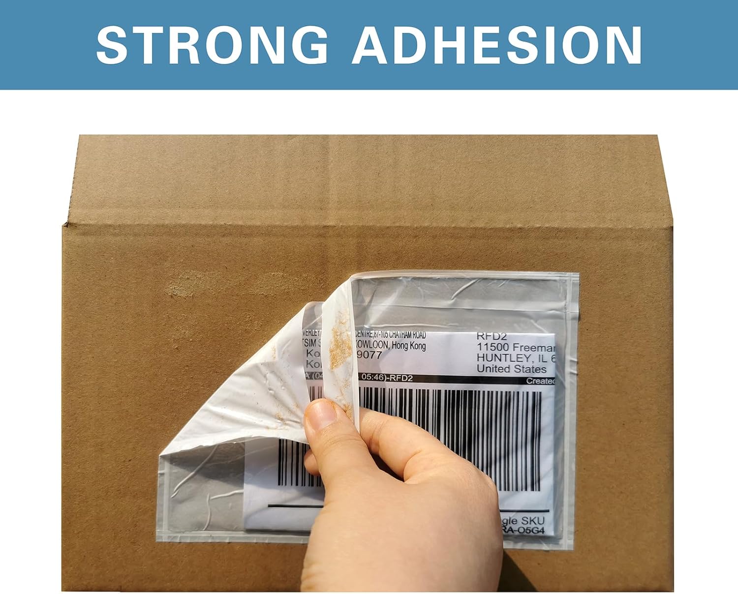 They keep your documents/lists safe while protecting the labels from moisture and damage during shipping. Features a self-adhesive backing for secure attachment without tape. Size 7.5 x5.5 inches, 1000 pieces per box