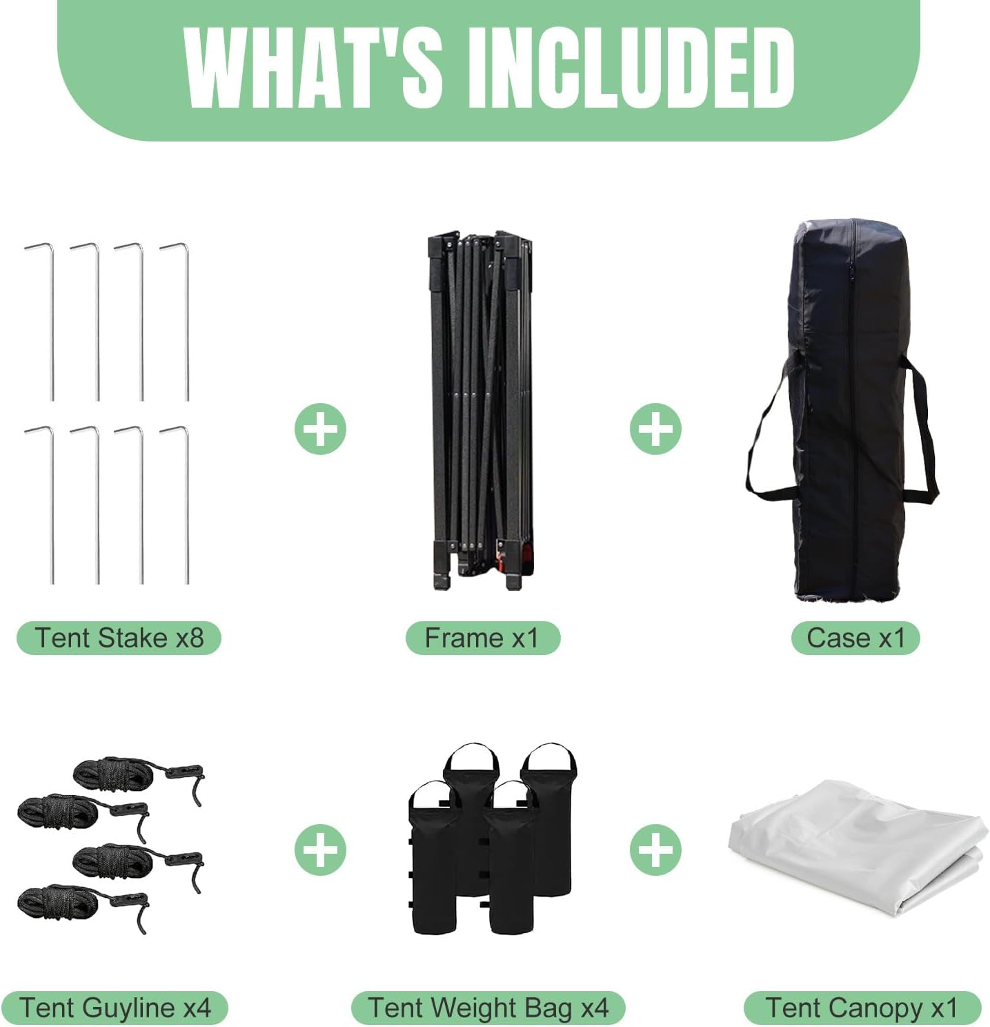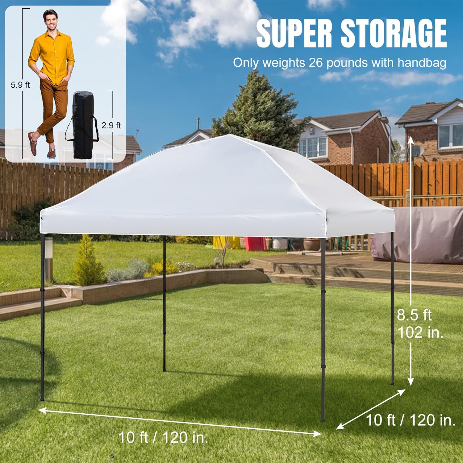10’x10′ Pop Up Canopy Tent, Outdoor Instant Canopy Patio Gazebo Event Tent, Portable Waterproof Pop-up Canopy with 8 Stakes, 4 Ropes, 4 Sandbags and 1Handbag for Party Camping Backyard, White
