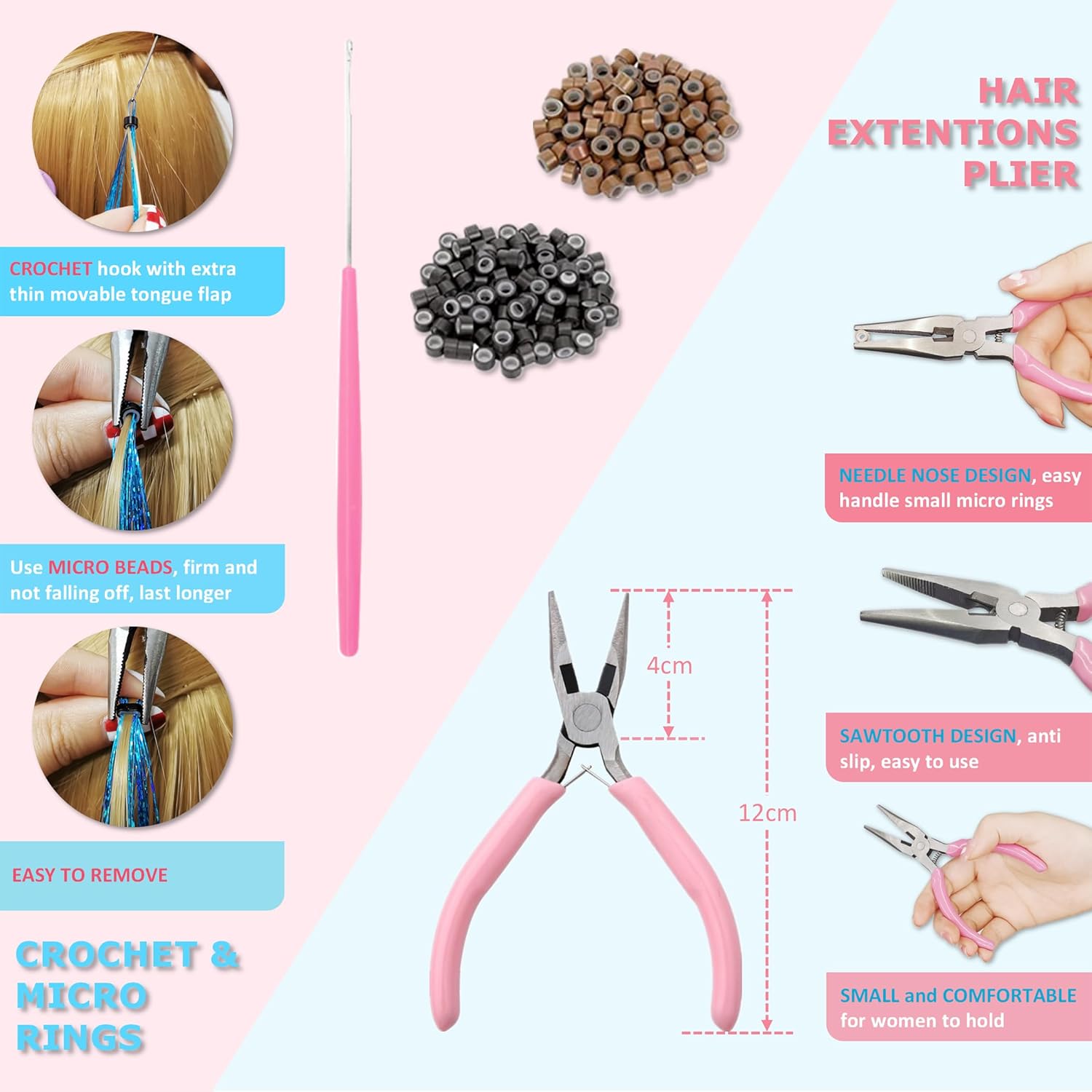 Every set comes with every tools you need (plier, crochet, micro-rings), you can use them to easily fix the hair tinsel, Use micro-ring, you can keep hair tinsel on your hair for a few month.