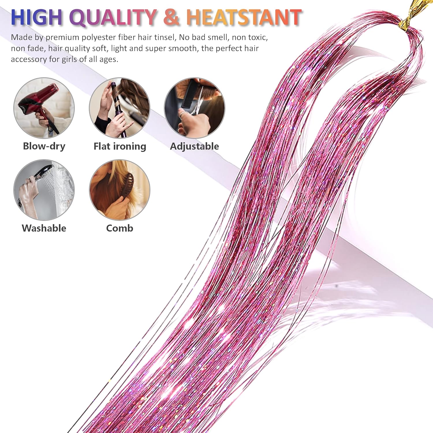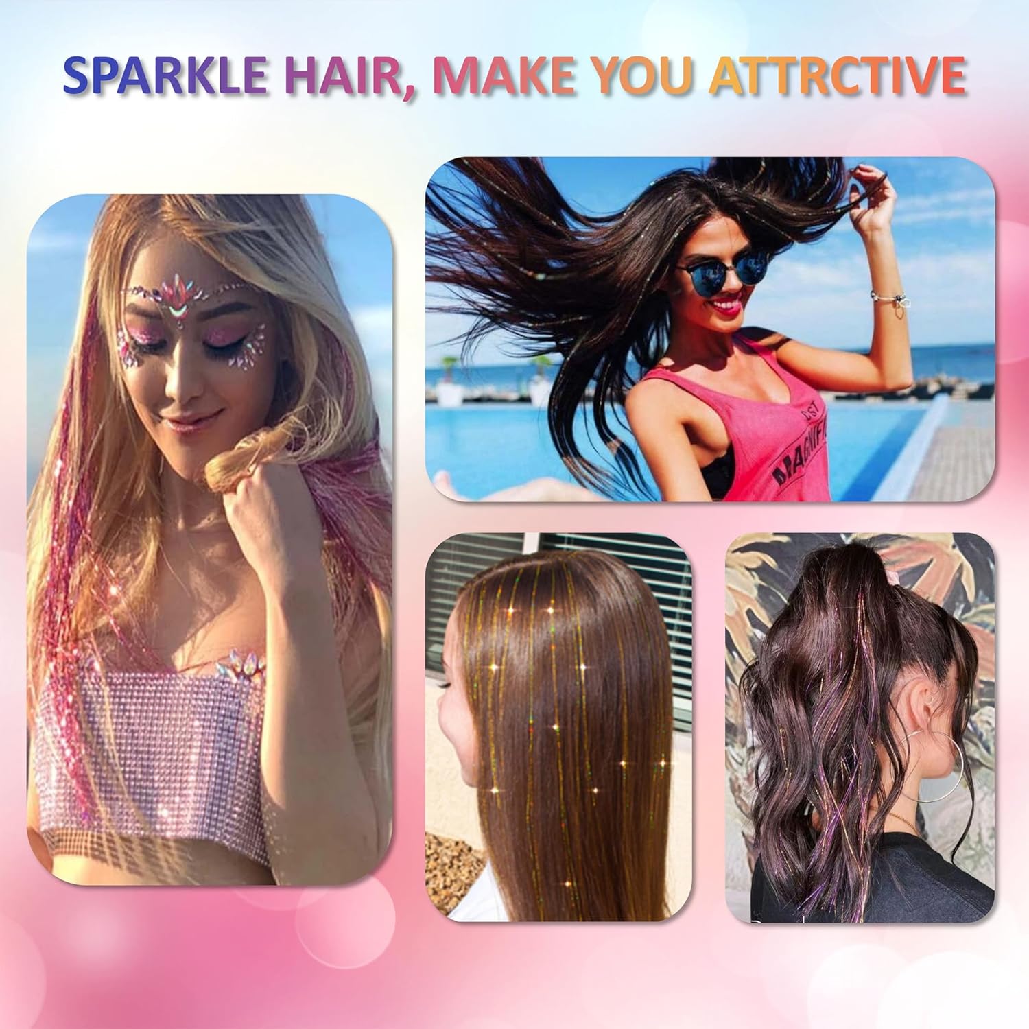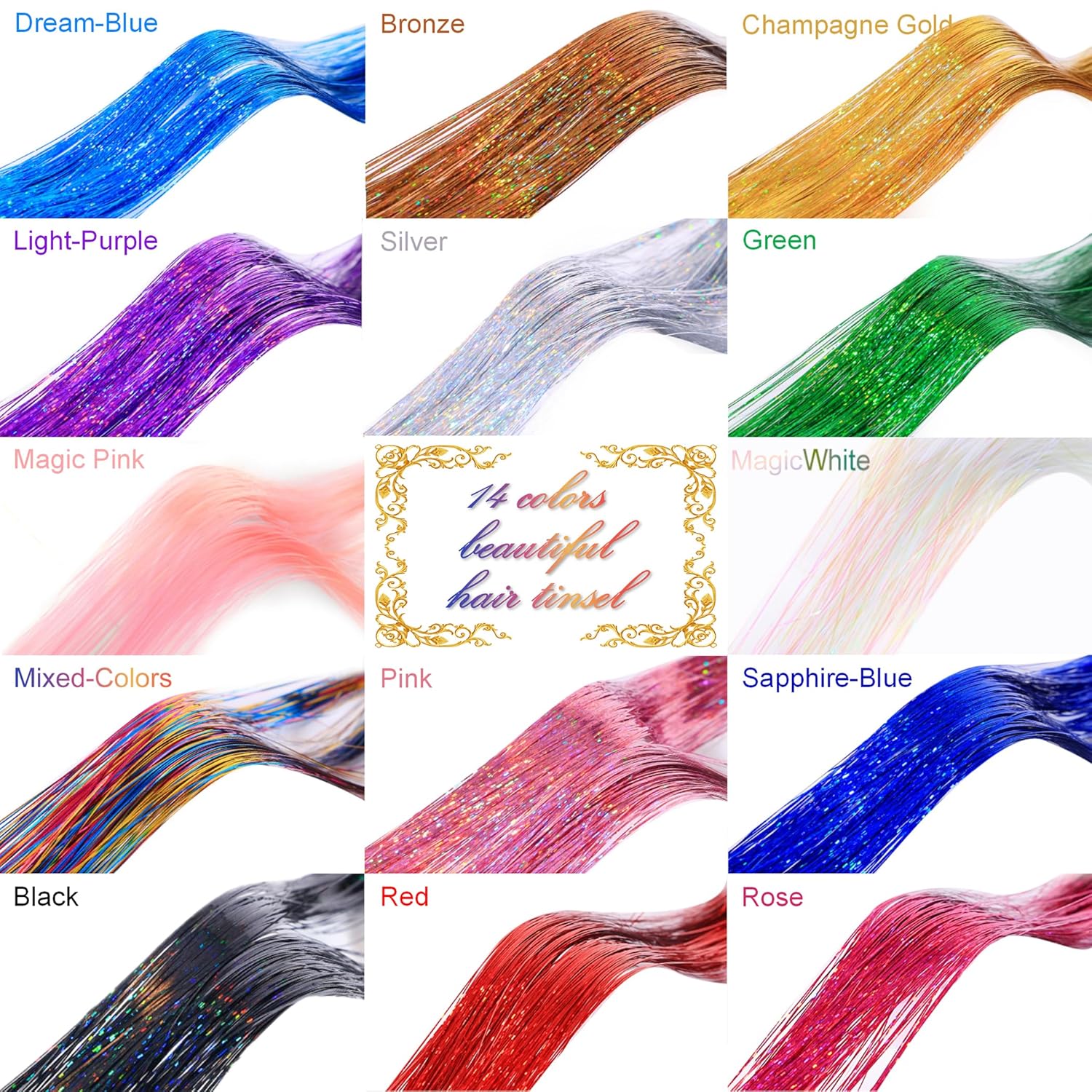 14 Colors Hair Tinsel Kit 48 Inches 2800 Strands with Tools and Instruction Easy to Install Fairy Glitter Tinsel Hair Extensions for Women and Girls,Shinny Sparkling Braiding Hair Accessories