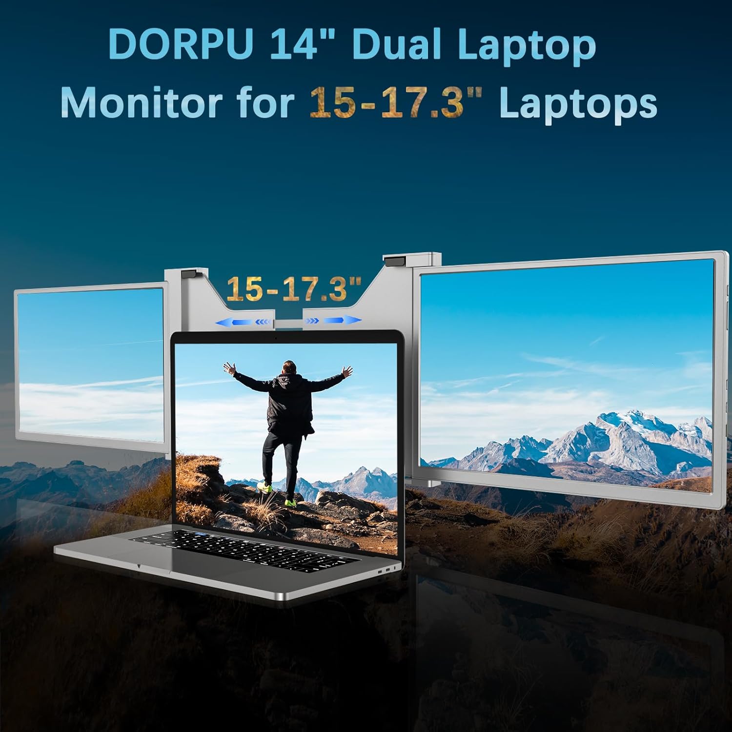 DORPU 14″ Dual Laptop Monitor for 15-17.3” Laptops