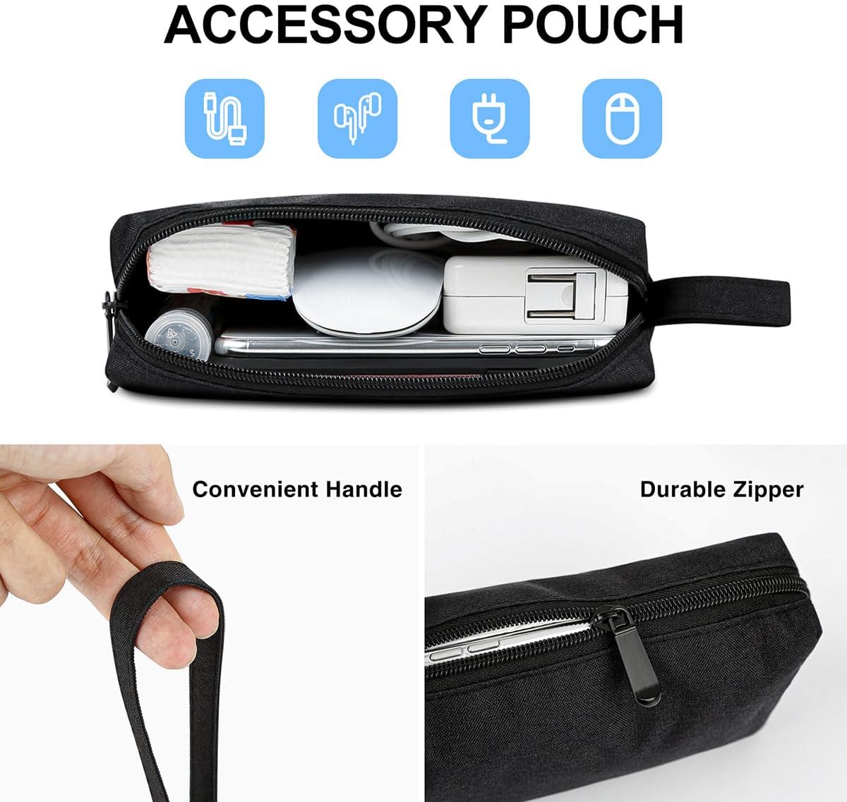 Main compartment for your laptop or computer, the laptop bag with a front zipper pocket can store small items such as charger, power adapters, cables, mouse. Additional accessory pocket with handle can serve as a storage bag for other daily necessities.