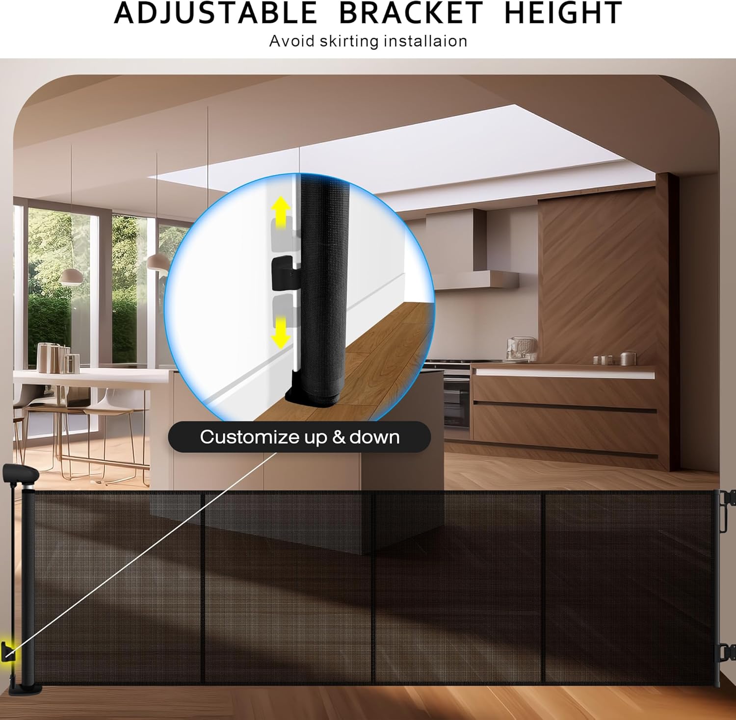 💕【Adjustable to Any Baseboard Height】- The mesh dog gate is designed with an adjustable bracket that effortlessly accommodates a wide range of baseboard heights, ensuring a perfect fit for your home without the risk of causing any damage to your walls or baseboards. This versatile feature allows for seamless installation in any room, providing peace of mind knowing that your gate will securely and safely block off any desired area.