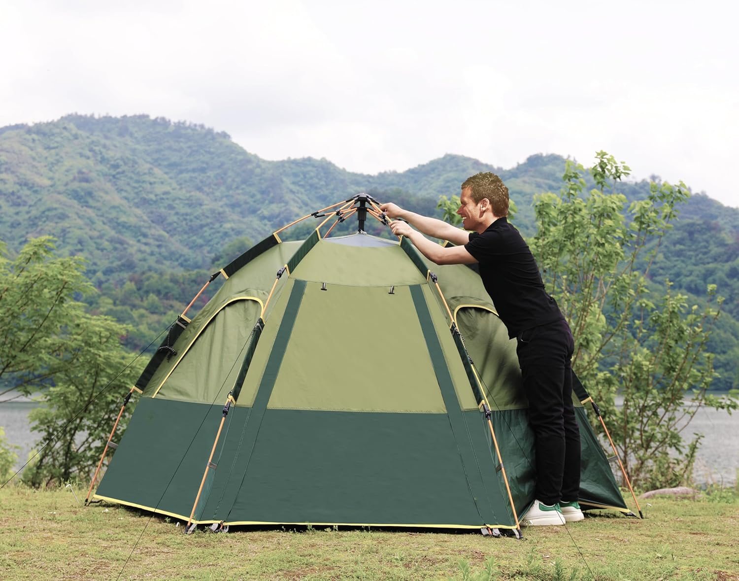 2-3-4 Person Camping Tent 60 Seconds Easy Quick Set Up Tent Waterproof Pop Up Dome Family Hexagon Outdoor Sports Backpacking Tents Double Layer Flysheet Camping Sun Shelters & Height 66 inches