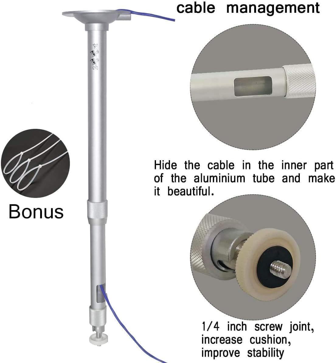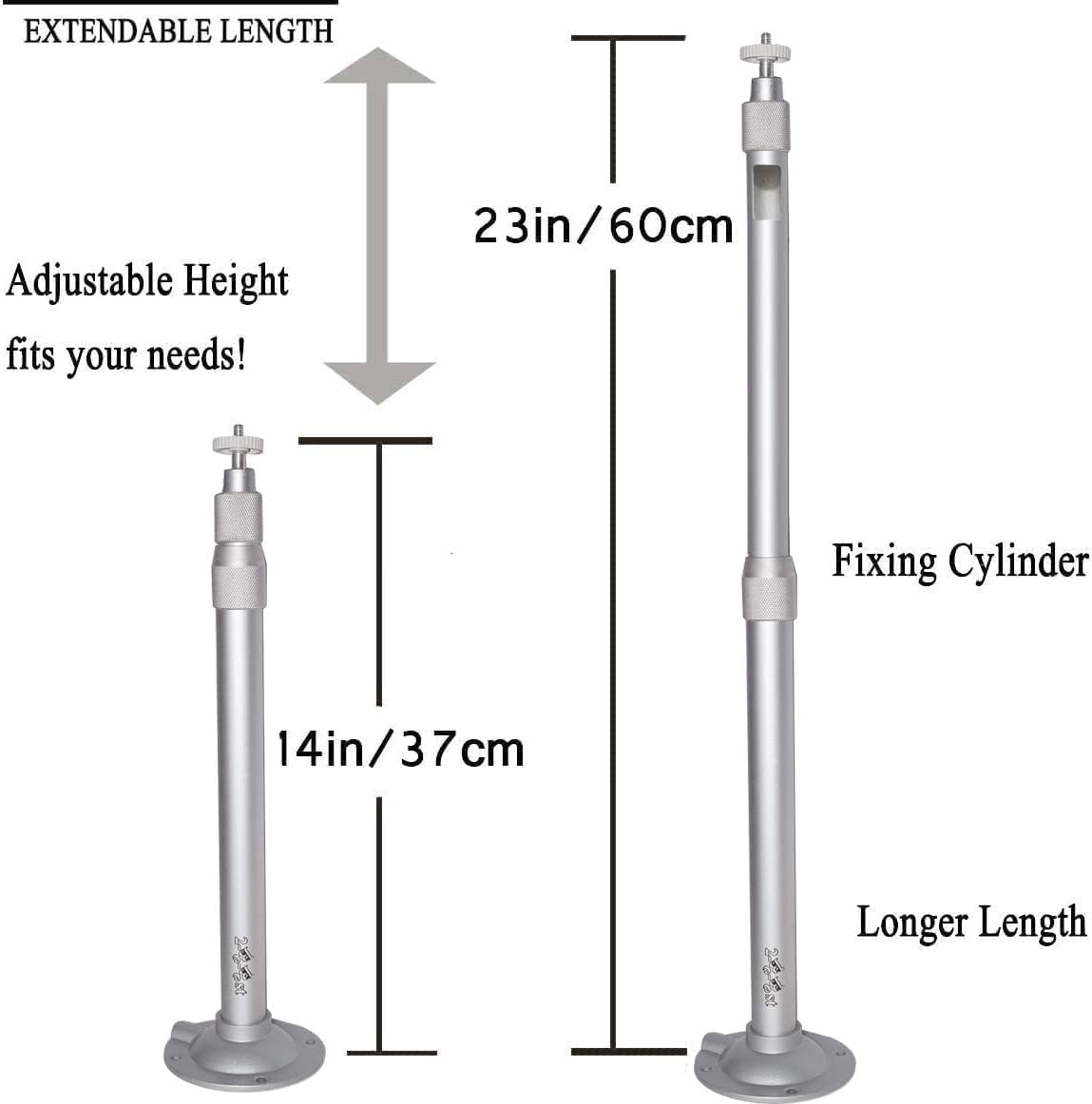 EXTENDABLE LENGTH-Projector mount in stainless silver coating with extension pole inside has an extending length from 14.5-23.5in / 37-60cm.