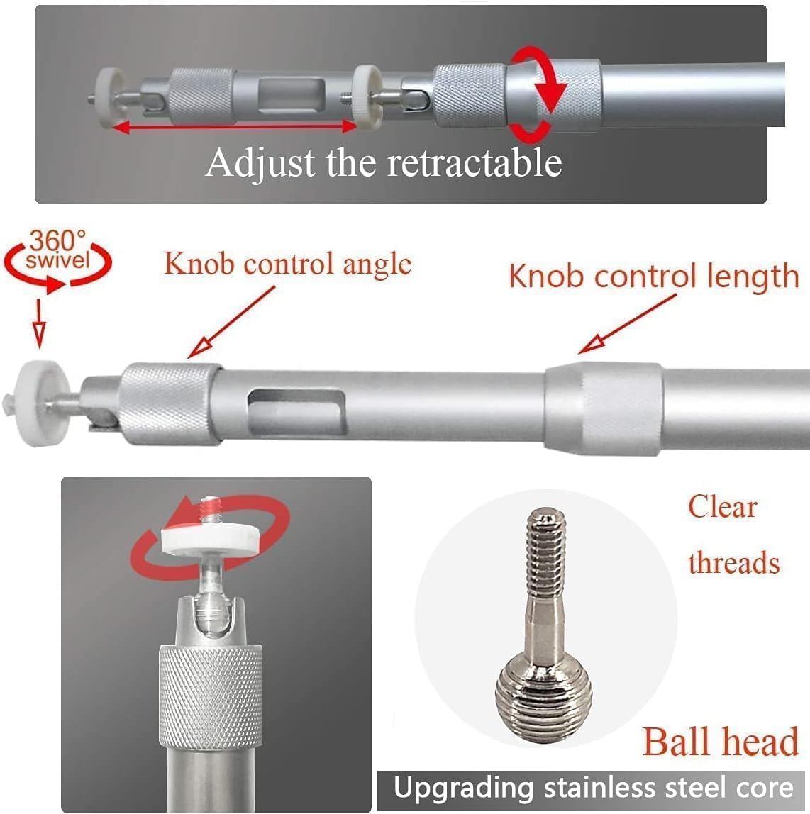 360° ROTATABLE-Adjustable projector mount has a 360° rotation and 180° angles adjustment pivot ball head.Upgraded new stainless steel core ball joint, very durable and high mechanical strength.