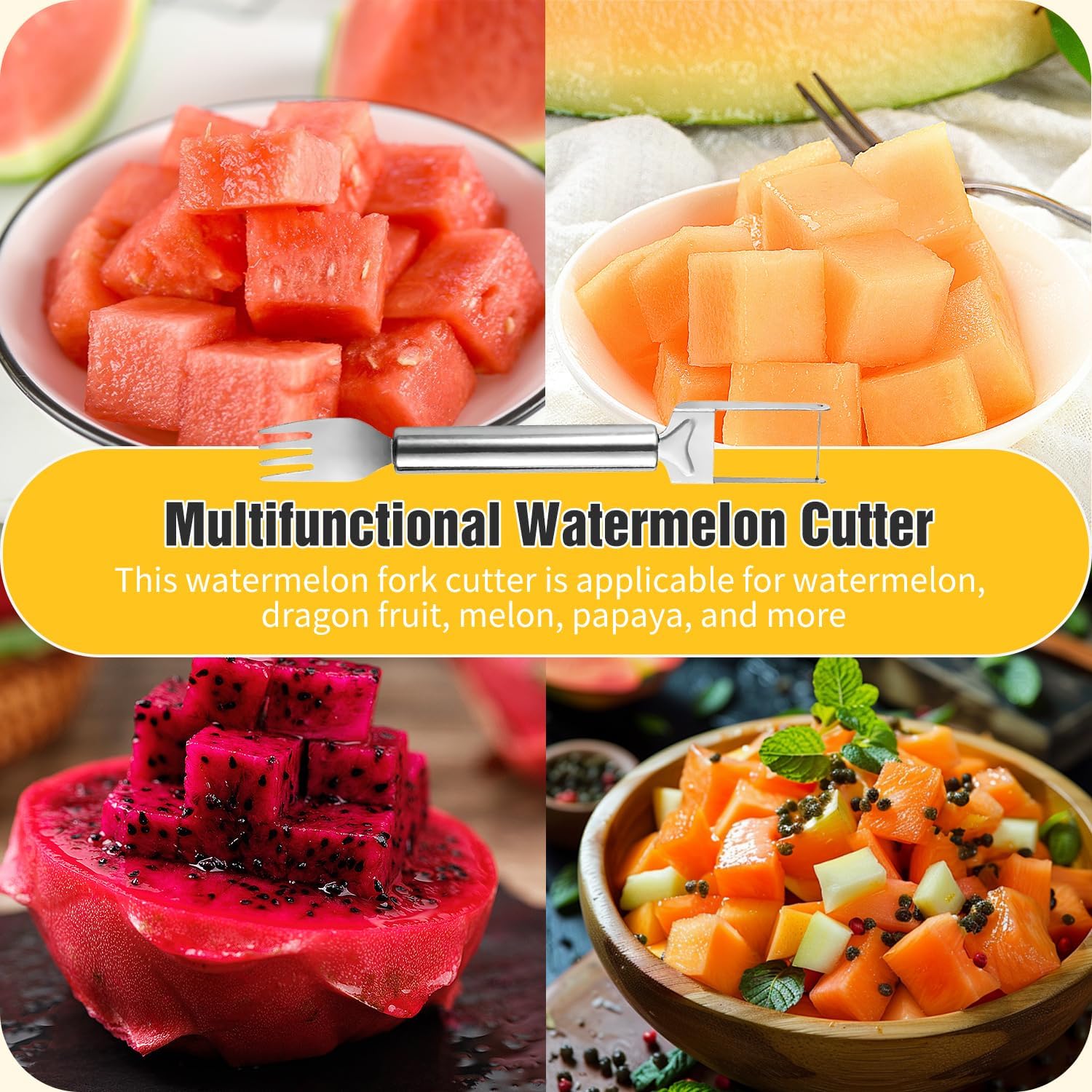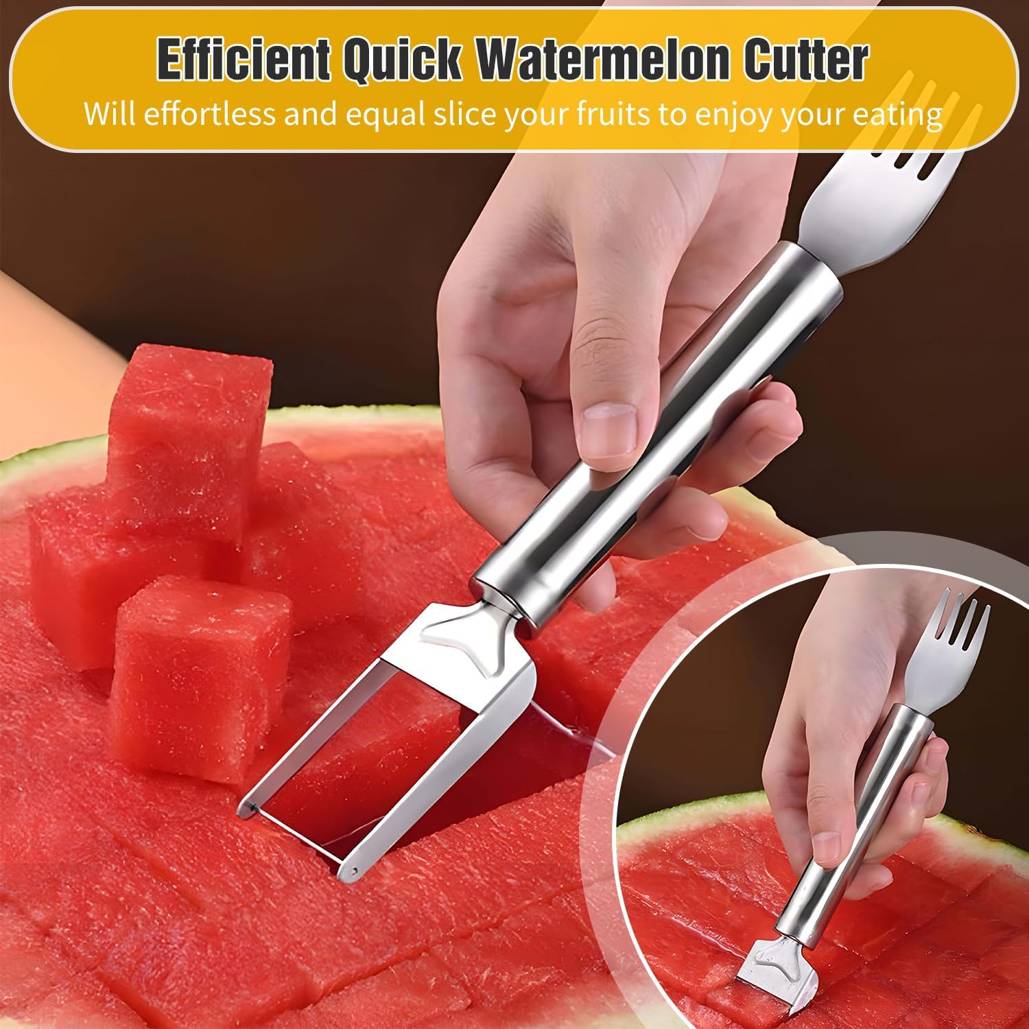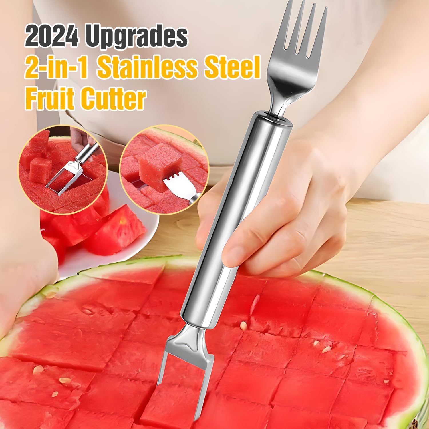2-in-1 Stainless Steel Fruit Cutter, 2024 Upgrades Watermelon Fork Slicer Cutter Watermelon Knife Tool, Watermelon Cutter Slicer Tool Stainless Steel Fruit Cutter Knives for Home Kitchen