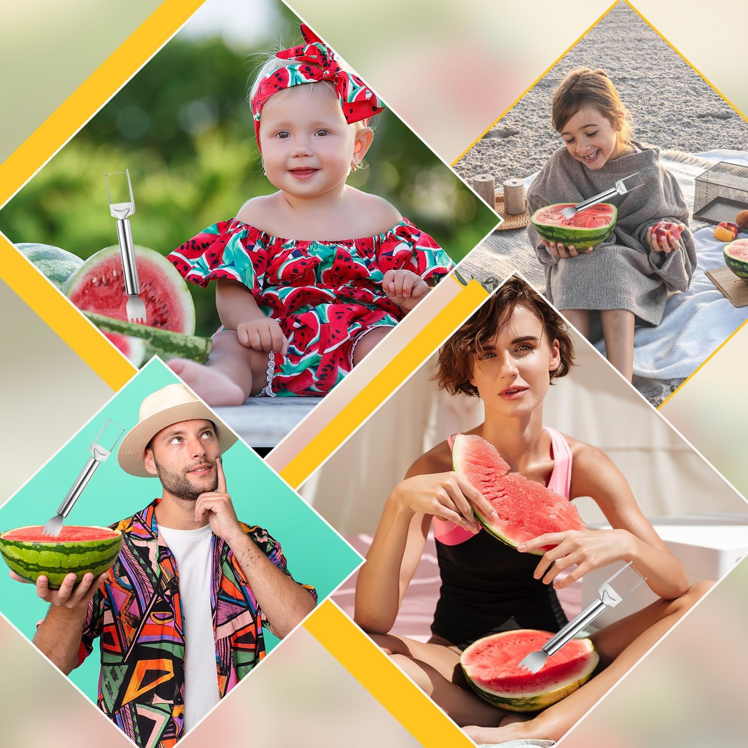 🍉【2024 Upgrades 2-in-1 Stainless Steel Fruit Cutter】: This stainless steel fruit cutter comes with an automatic cutting knife blade and can be use as your fork in the same time, Simply push the slicing tool into the watermelon and the watermelon pieces will automatically come out. Upgrades handle is ergonomic, comfortable to hold and labor-saving to use.