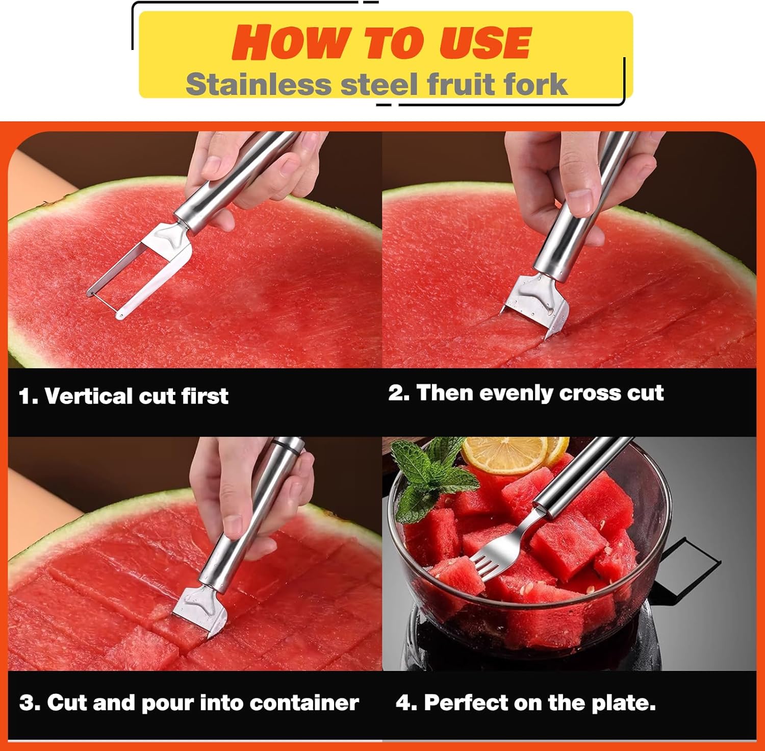 2-in-1 Stainless Steel Fruit Cutter,2024 New Upgrade Watermelon Slicer,Watermelon Cutter,Dual Head Fruit Forks Slicer Knife, Watermelon Fork Slicer Cutter Slicer Tool for Home, Kitchen, Camping(2PCS)