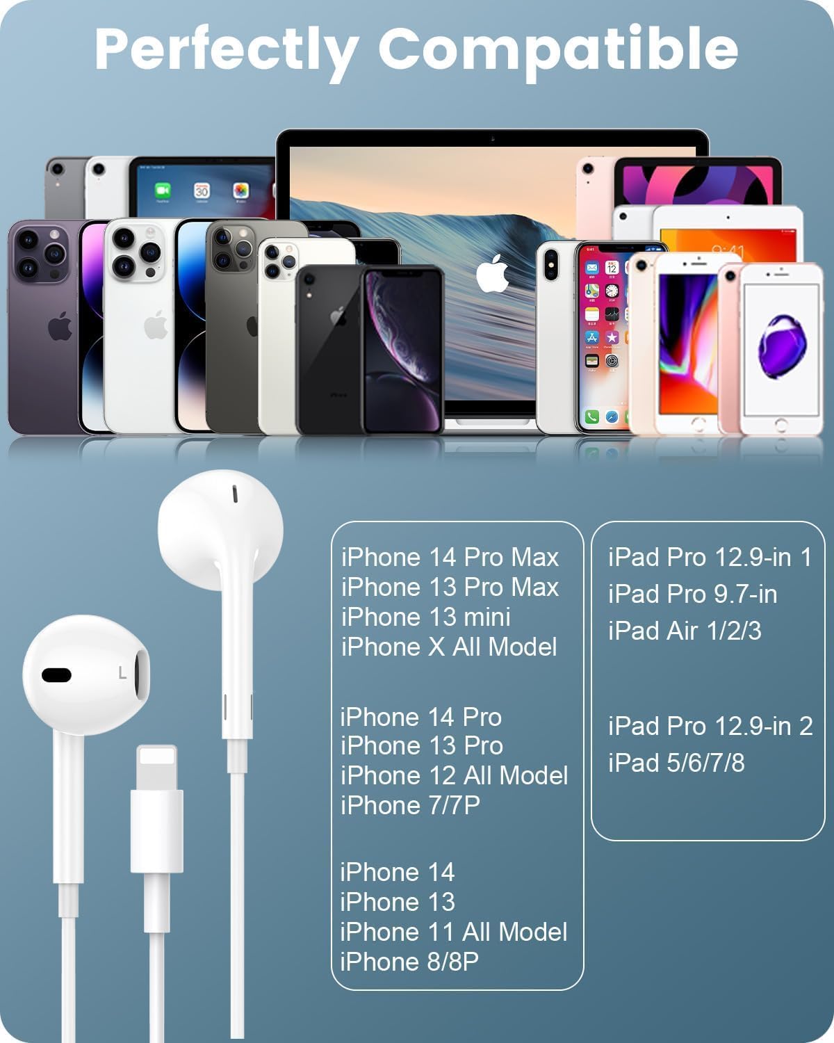 【Durable and Comfortable Design】: The lightning earphone with ergonomic angular design,High-quality materials,Earbuds are built to last,keep a long sense of comfort during the wear,bring you a better music experience