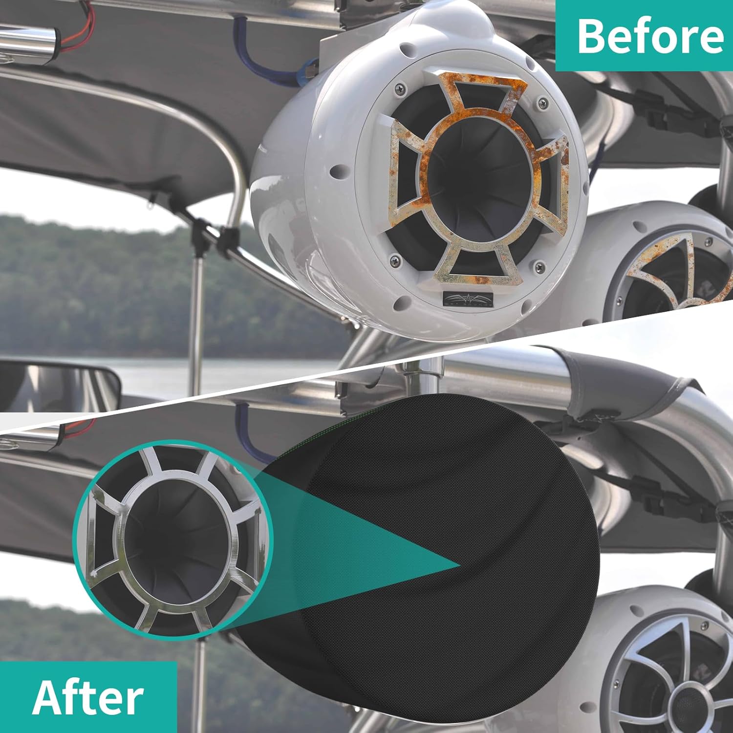 Compatibility: There are 4 sizes for you to choose from, the large tower speaker cover measures 9.5″ H x 9.5″ W x 11.4″ D. It is suitable for boat, jeep, or ATV water slide tower speakers, it is recommended that you measure the size of your speakers before placing an order.