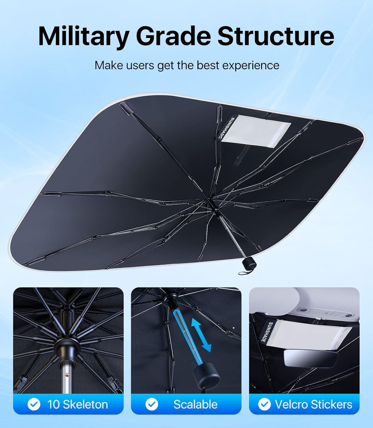 [2024 Newest] andobil Car Windshield Sun Shade Umbrella -Super Heat Insulation Protection- Foldable Sunshade for Car Windshield -Car Accessories Interior -Easy to Use-Out Keeps Car Cool – Large