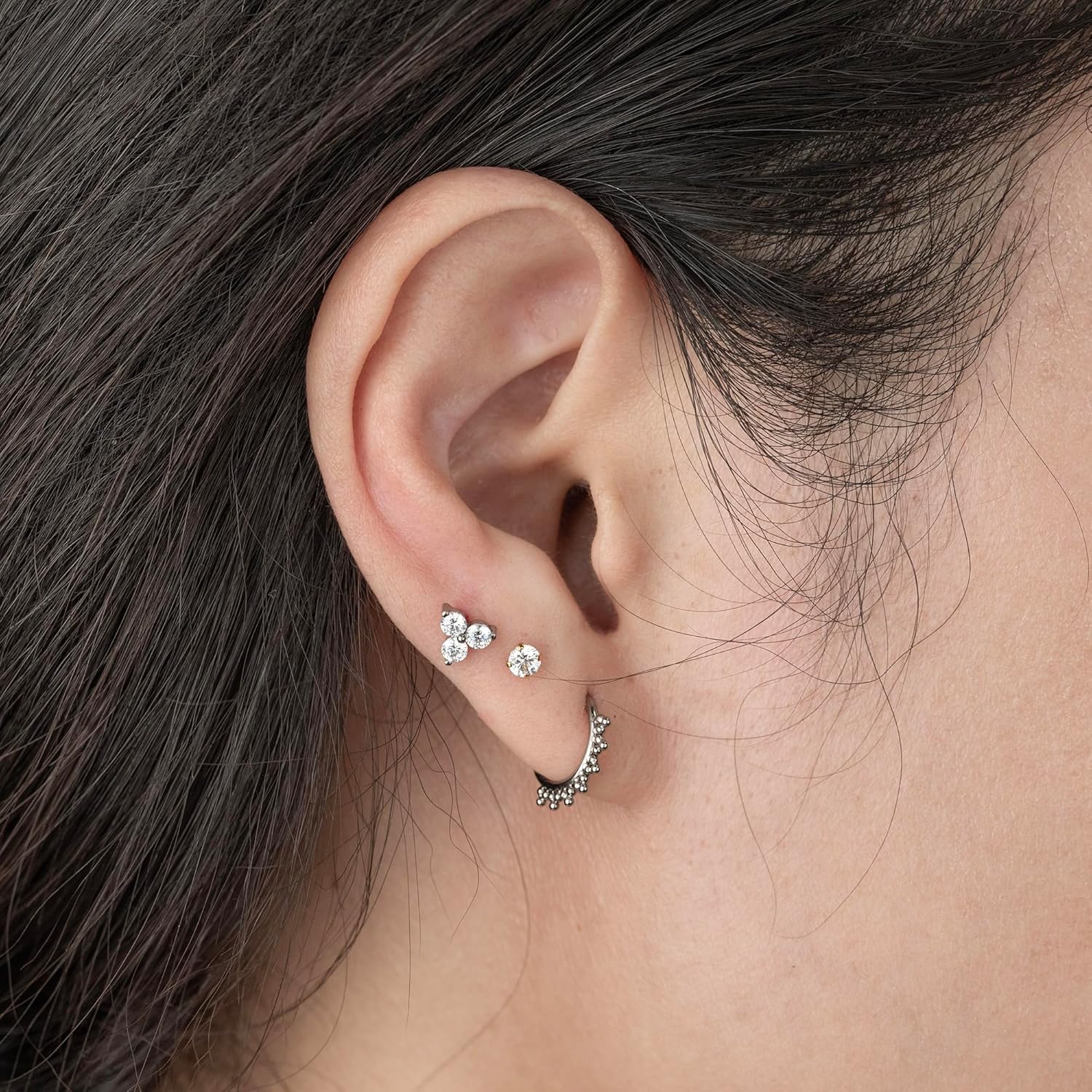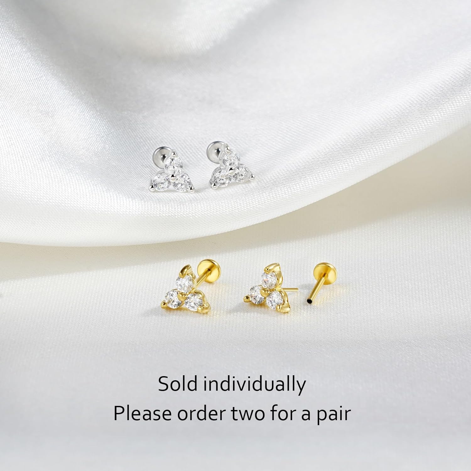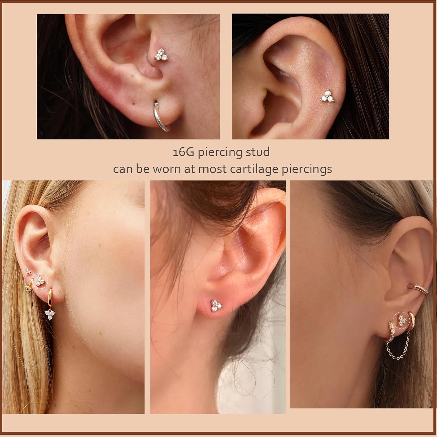 This trinity CZ stud comes with 16gauge flat back post which can be worn for most cartilage(including helix and conch piercing) and lobe piercings.