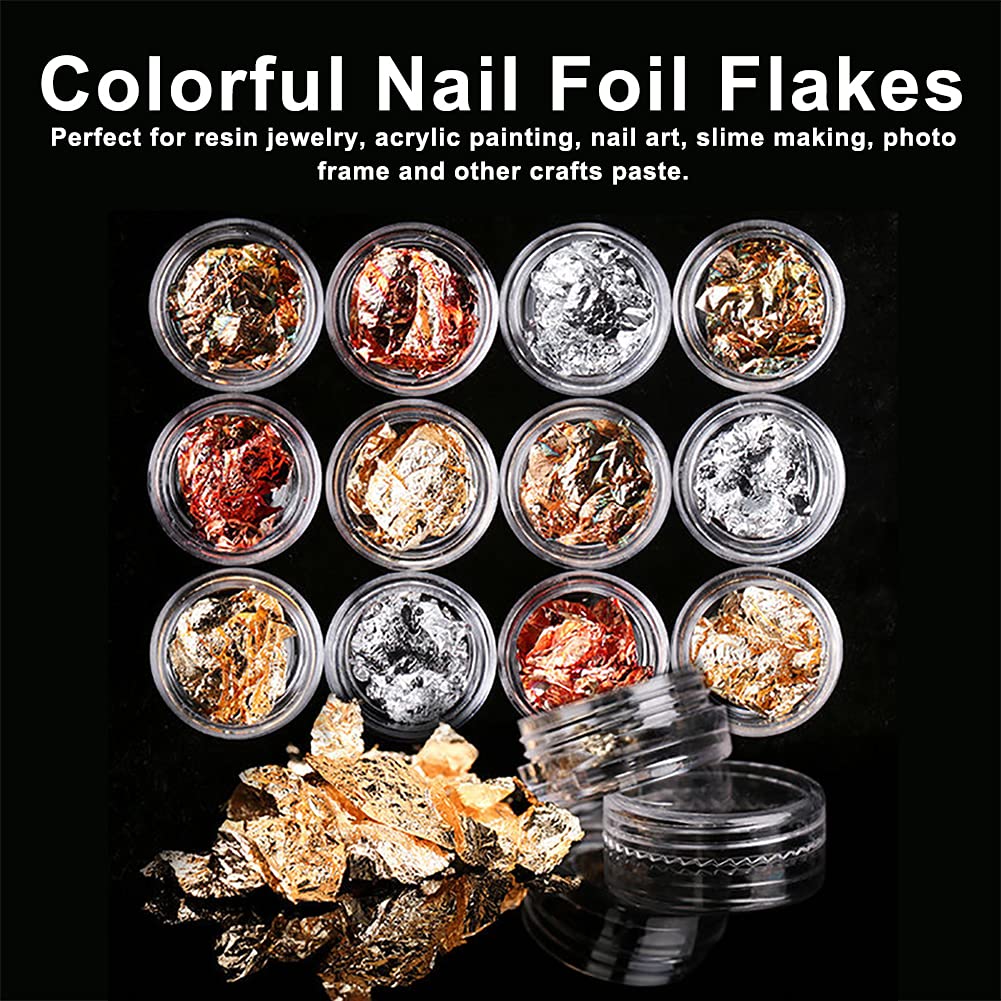 ✨ WIDE USES– This colorful nail foil flakes could be used for gilding, painting arts, perfect for resin jewelry, acrylic painting, nail art, slime making, photo frame and other crafts paste and crafts nails and diys