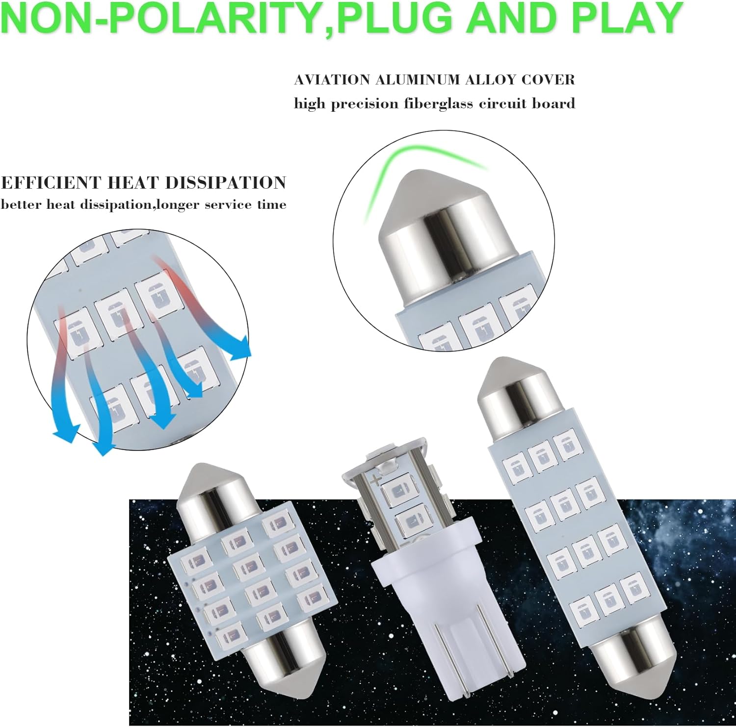 Wide Applicability: Festoon LED bulbs can be Interior map lights, dome lights, headlights, license plate light, parking lights, corner lights, trunk light, side marker lights, courtesy light, cargo light, trunk lights, stepwell lights, cosmetic mirror lights, door control lights etc. Easy to install, just plug and play.
