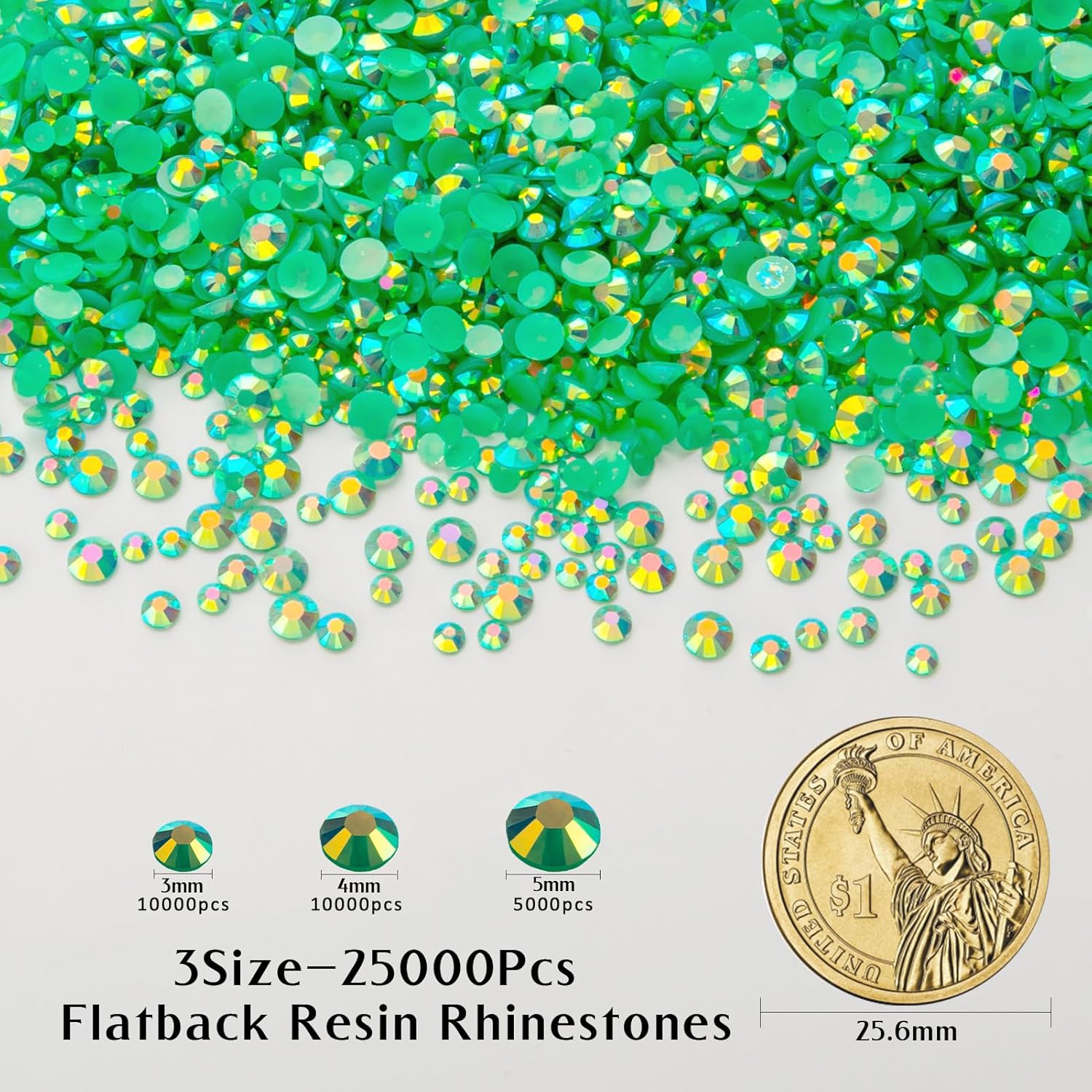 25000 Pcs Dark Green AB Resin Flatback Rhinestone,3 mm 4 mm 5 mm Rhinestones Wholesale Bulk,Jelly Resin Rhinestones for Crafts DIY Design, Tumblers, Clothes, Makeup, Nail Art