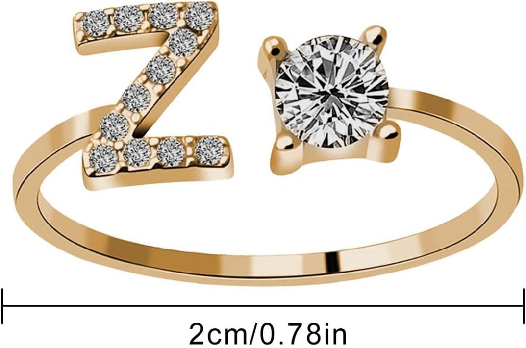 Be the first to review “26 Letters Gold Rings for Women – Synthetic Diamond Studded Zirconia Open Adjustable Rings Ladies Jewelry Accessory Gifts”