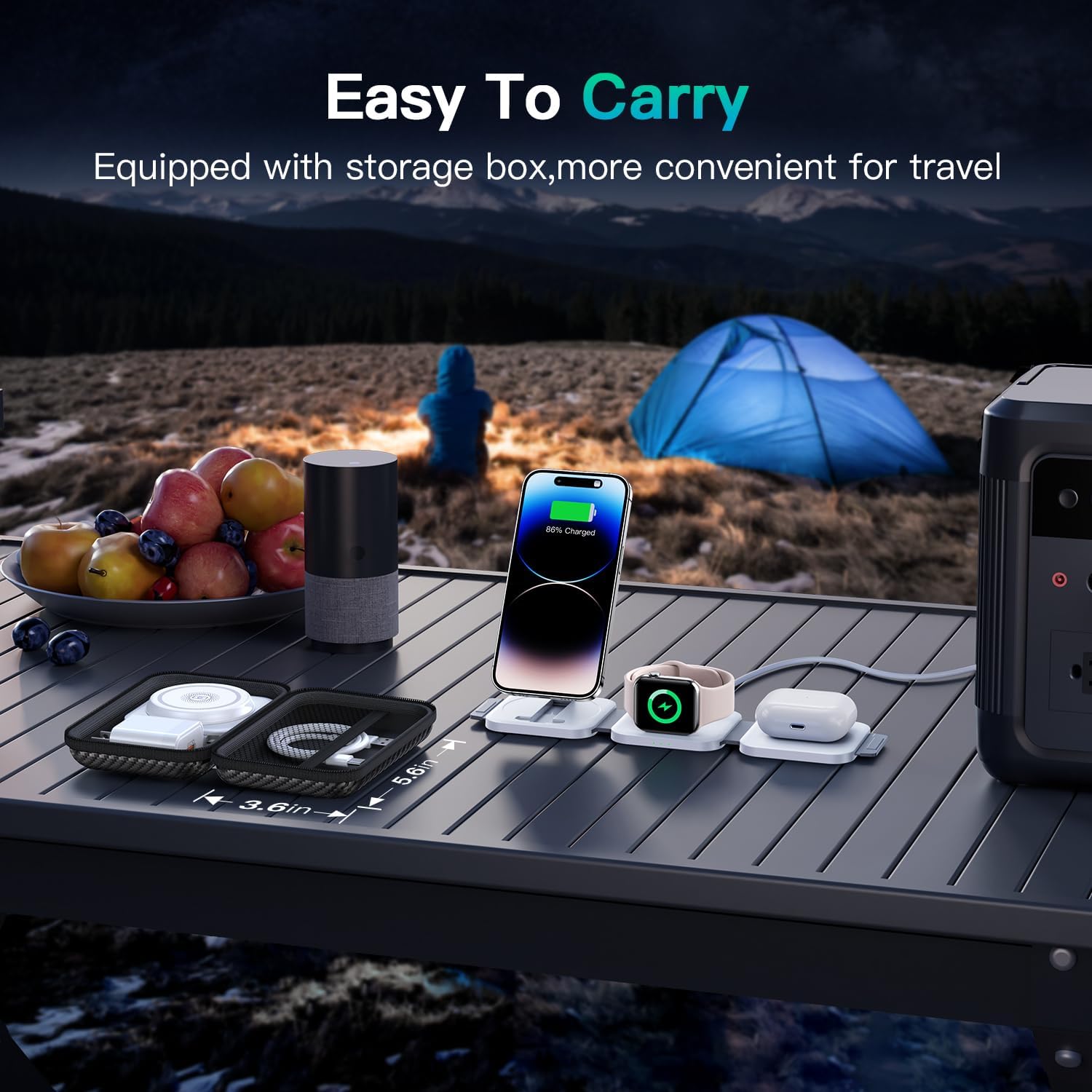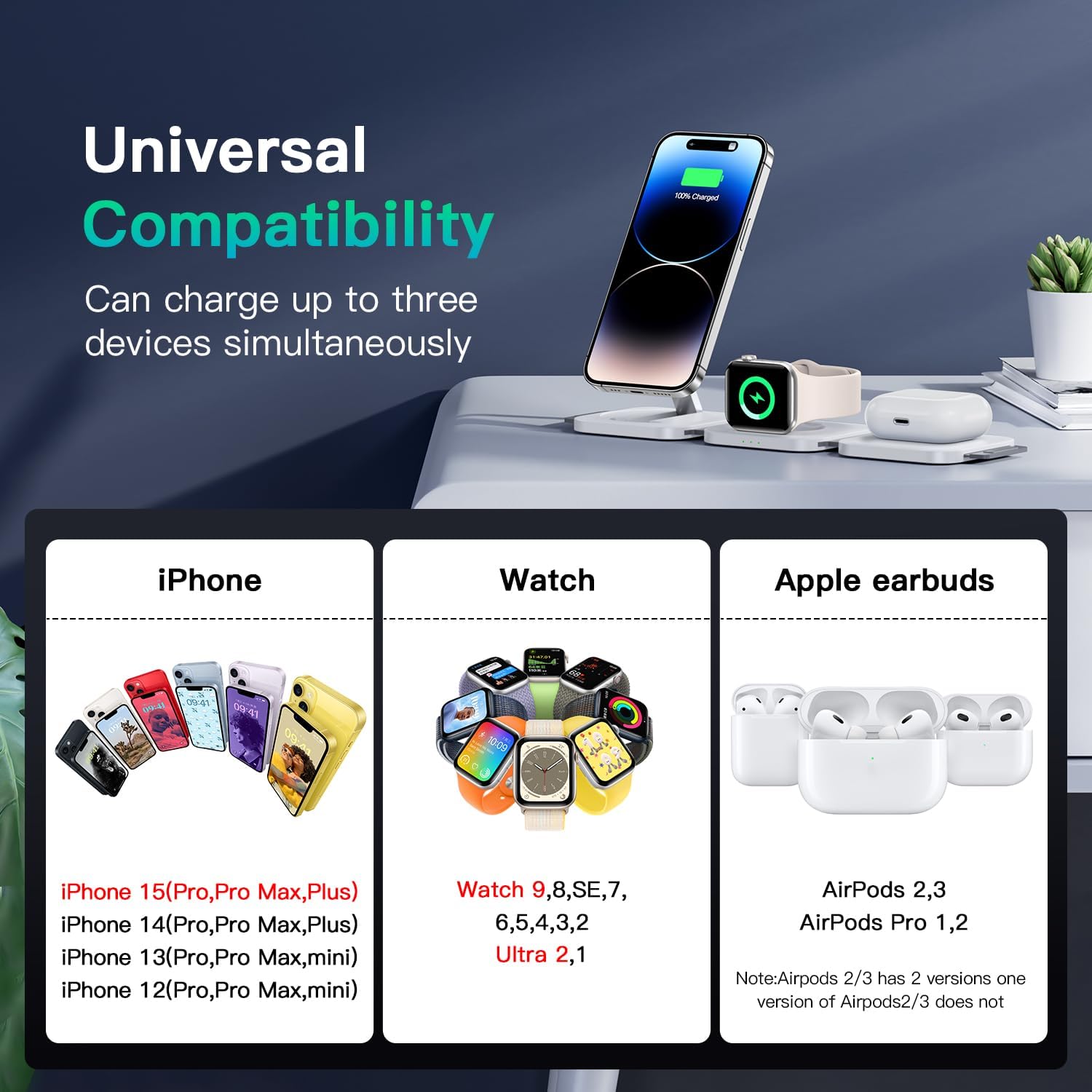 3 in 1 Wireless Charger, Fast Charging Station, Magnetic Charger for iPhone 15/14/13/12 Series, Travel Charger for Multiple Devices for AirPods 3/2/Pro, Charging Stand for Apple Watch Series