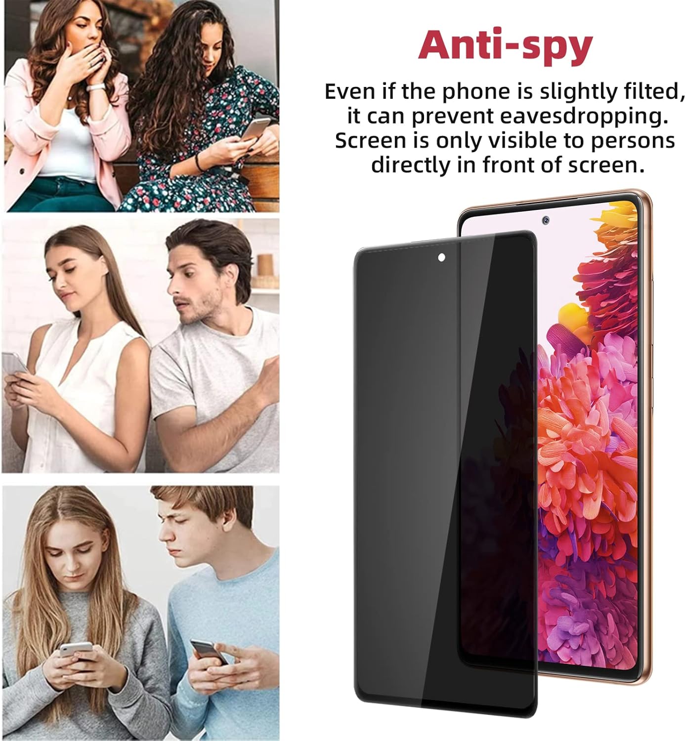 【Superior Quality】Privacy screen Samsung Galaxy S20 FE made from the highest quality tempered glass with 100% bubble-free adhesives for easy installation and no residue when removed. Maintains the Original Touch Experience, Hydrophobic and Oleo-phobic coatings protect against sweat and oil residue from fingerprint.