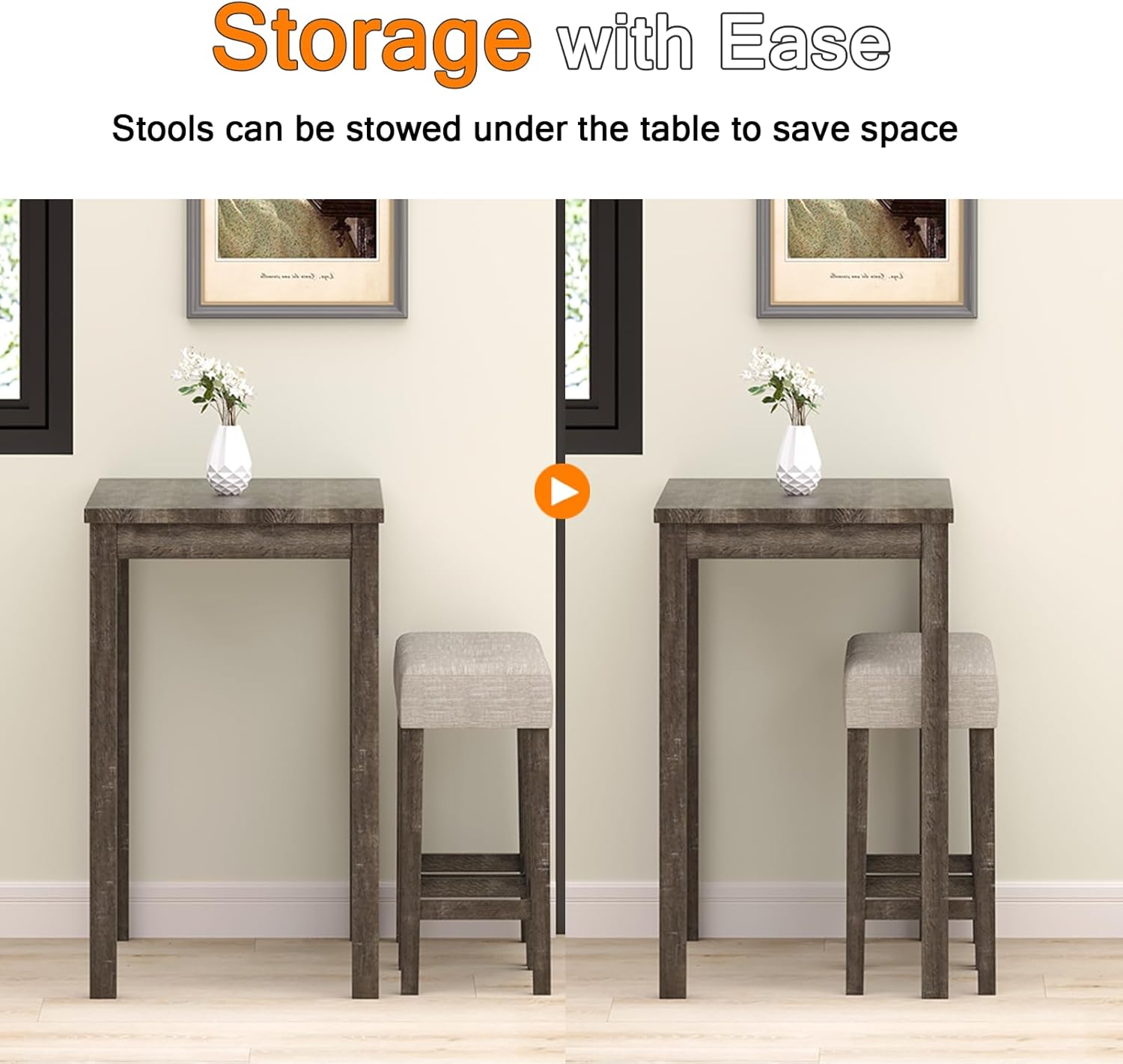 【Easy to Assemble】 The FAGAGA 3-piece bar table set comes with detailed installation instructions to help you effortlessly assemble wood dining table. If you have any questions, please contact us and our team will solve your problem within 24 hours.