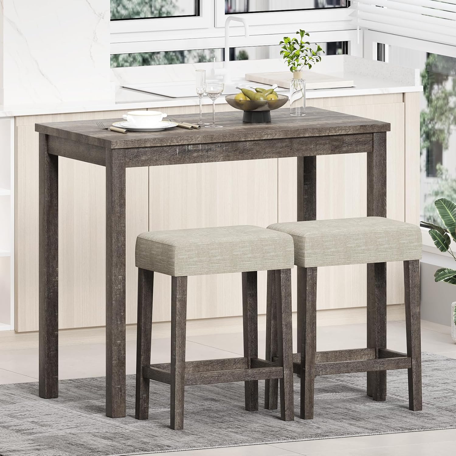 Modern Pub Table Set for Small Spaces FAGAGA 3-Piece Dining Table with 2 Ergonomic Chairs