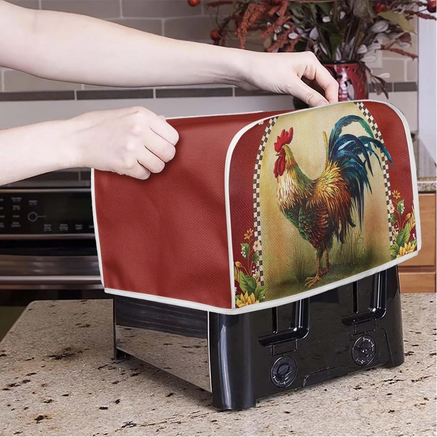 4 Slice Toaster Cover Sunflower Rooster Kitchen Small Appliance Cover Toaster Bread Maker Dust-proof Cover Home Decoration