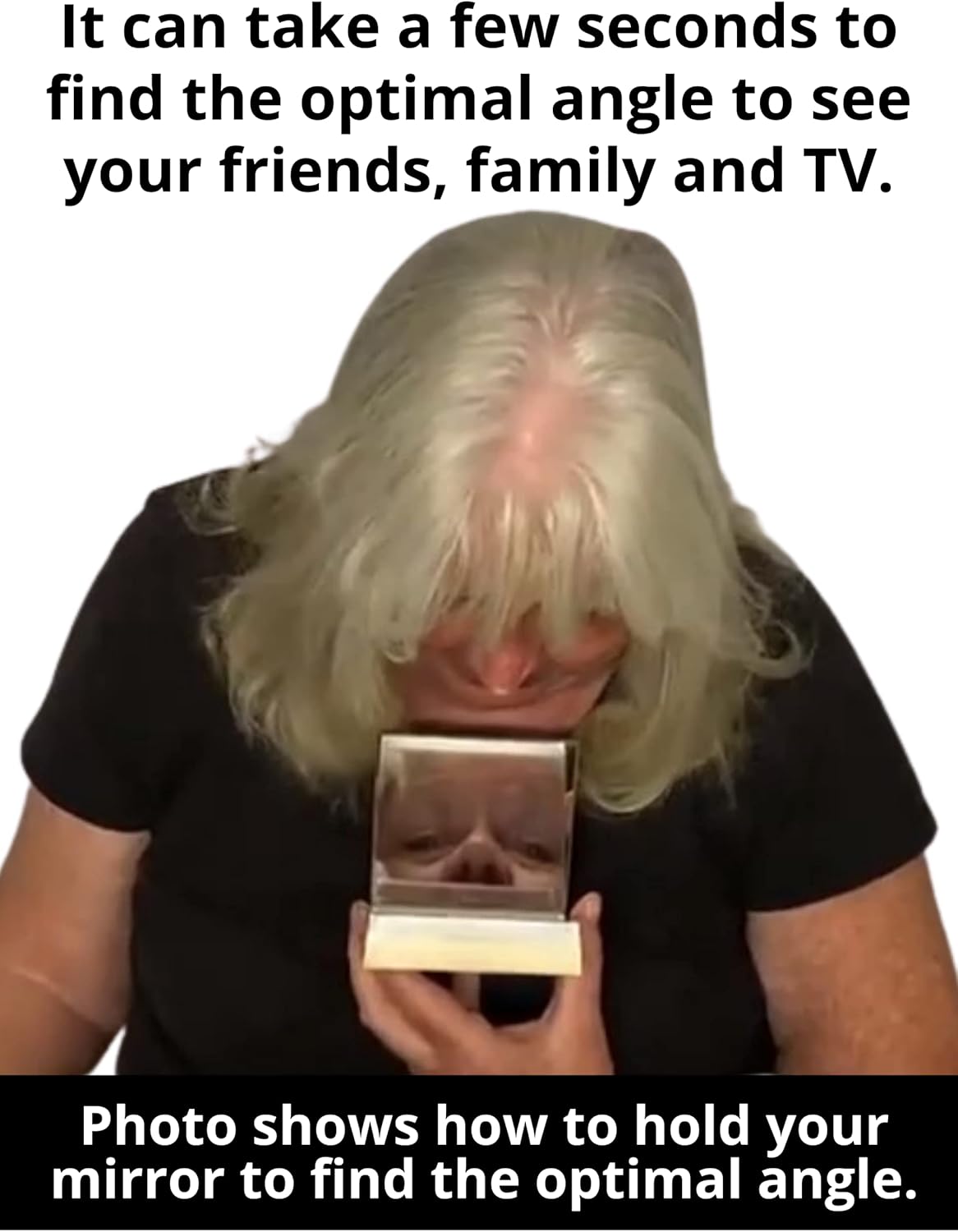 3. Adjust the angle of the mirror for the best view – prop if necessary. It may take a few seconds to get the optimal angle to see your family, friends or tv.