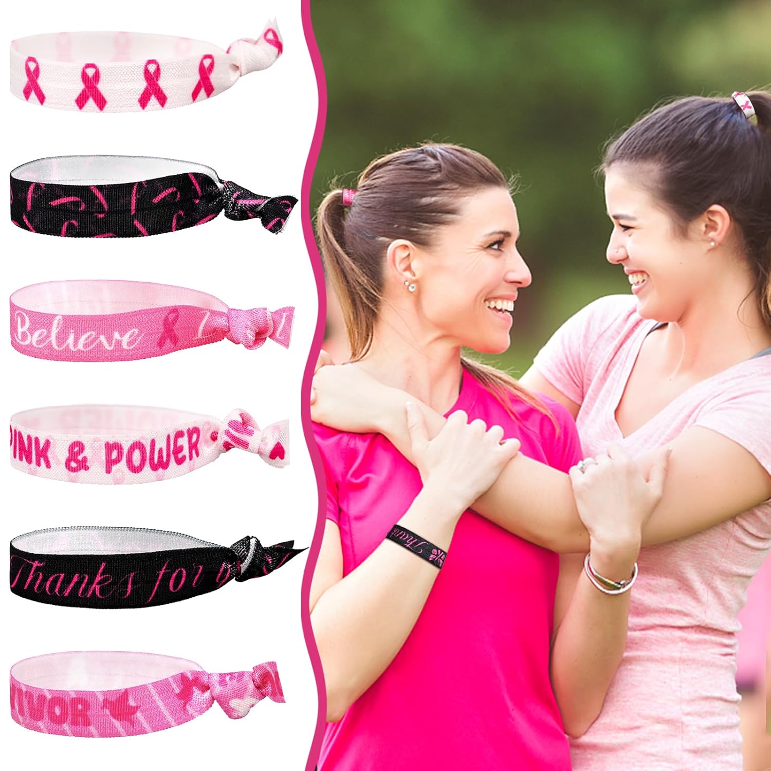 Portable and Lightweight: the dimension of the breast cancer awareness wristband is about 7.87 x 0.59 inches/ 20 x 1.5 cm, and the cardboard size is about 2.17 x 2.95 inches/ 5.5 x 7.5 cm, the suitable size is easy to carry and store, you can put it into your purse, bag and pocket, also can wear it as decoration, the elastic hair band is suitable for everyone