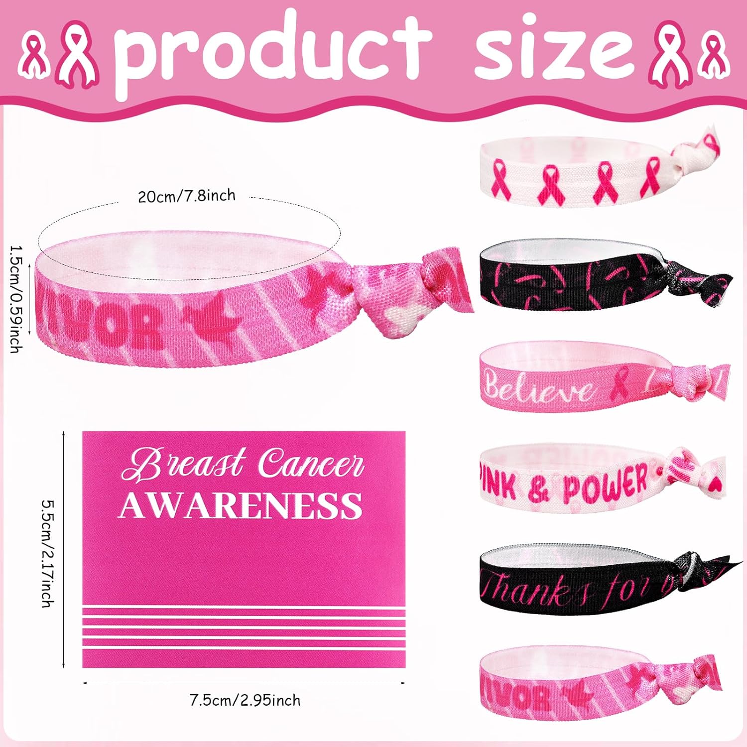Breast Cancer Awareness Hair Tie Combination: you will receive 48 sets of breast cancer awareness hairband set gifts, including 48 breast cancer awareness hair ties, 6 styles, 8 pieces each; 48 breast cancer awareness cards, 3 styles, 16 pieces each. The quantity is sufficient and the design is innovative and unique, which not only meets our daily use needs, but also can be shared with friends around us to call attention to breast cancer
