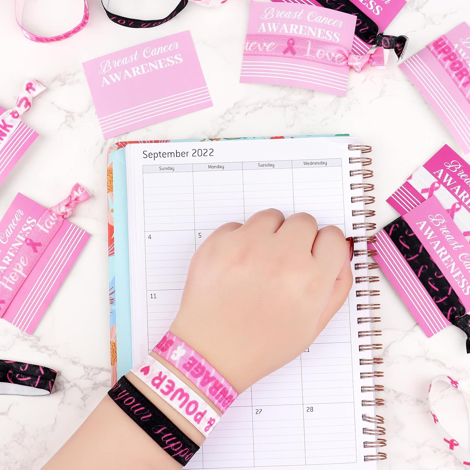 Breast Cancer Awareness Hair Tie Combination: you will receive 48 sets of breast cancer awareness hairband set gifts, including 48 breast cancer awareness hair ties, 6 styles, 8 pieces each; 48 breast cancer awareness cards, 3 styles, 16 pieces each. The quantity is sufficient and the design is innovative and unique, which not only meets our daily use needs, but also can be shared with friends around us to call attention to breast cancer