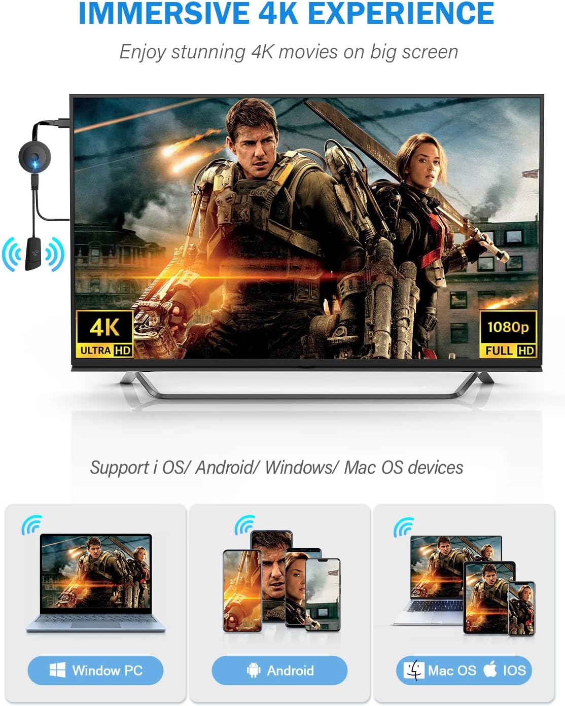 Our device is compatible with most mobile phones, tablets, and computers, allowing you to easily 4K connect to your TV, monitor, or projector for a seamless wireless screen mirroring experience.
