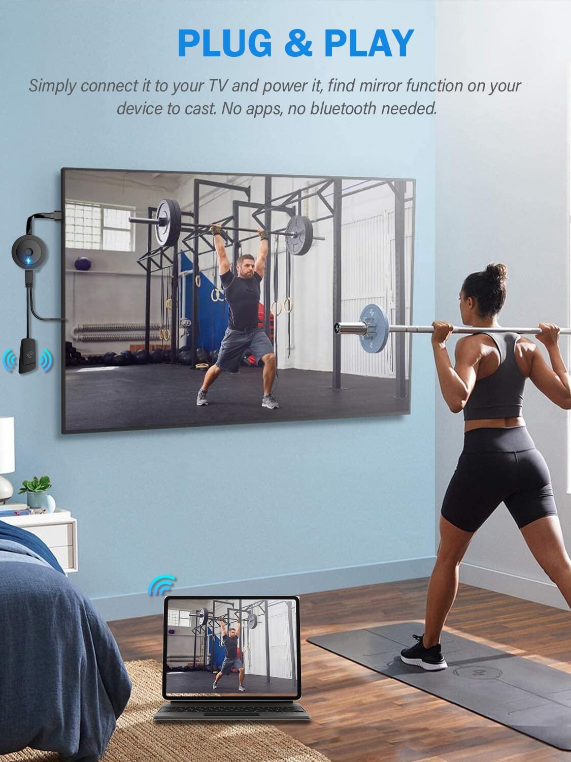 【Wireless & Easy Connection】 Simply plug the dongle into your TV, power it up, and find the mirror function on your device to start casting. Enjoy high-definition video and audio from your device to any display, making your HDMI wireless. (Note: iOS system requires an additional step to connect to the dongle’s wireless signal