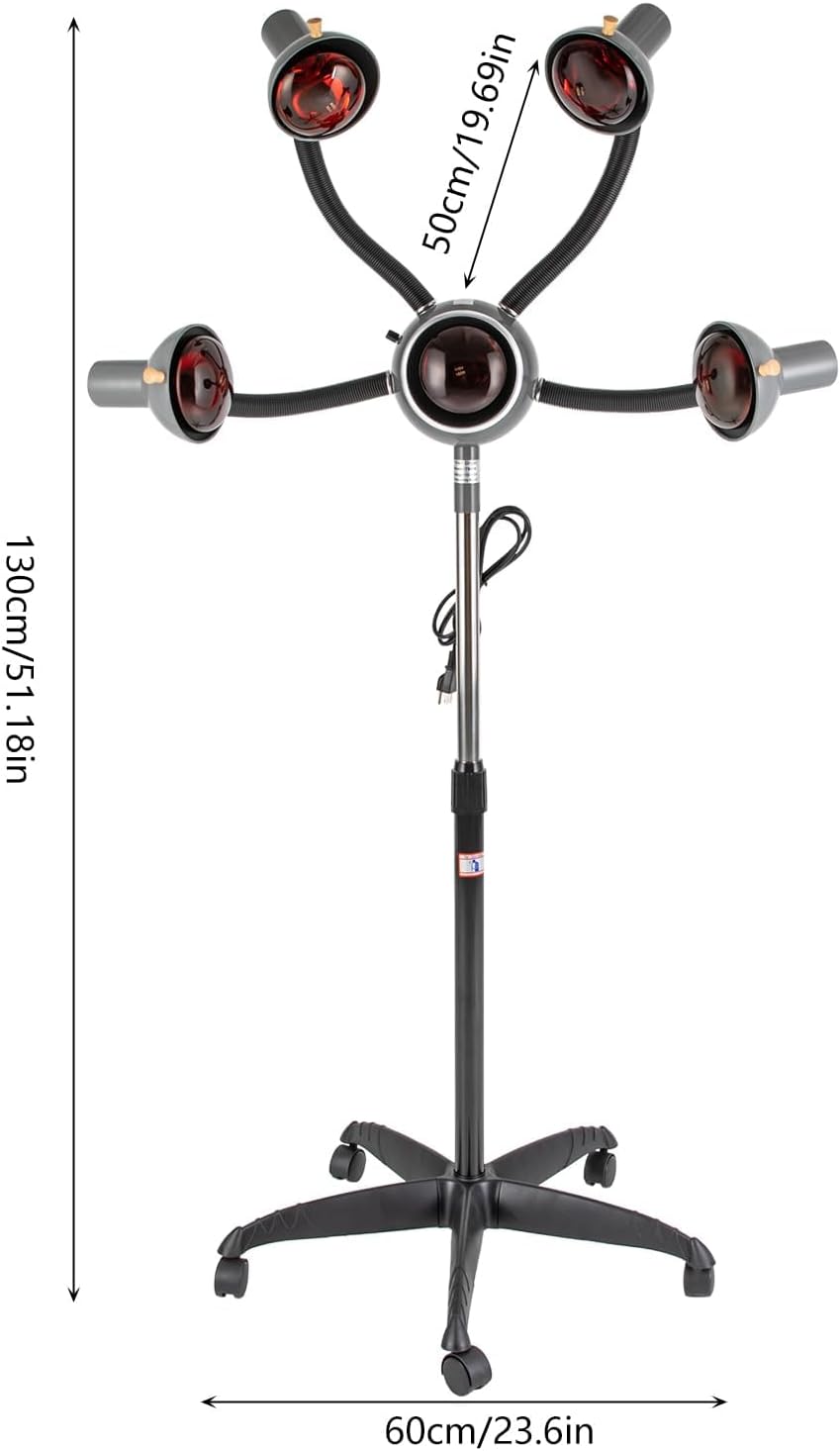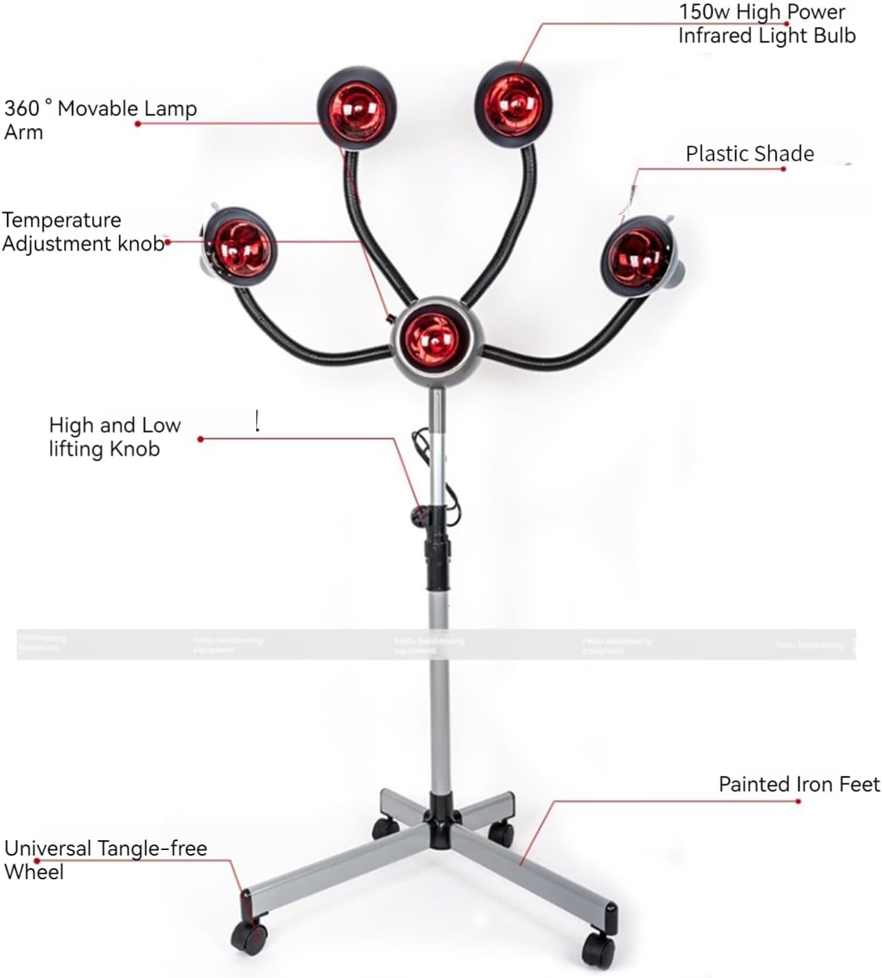 【Function】: Combine Perm Care, Grease Care, Hair Dyeing Care and Hair Drying Care in One. LIECARYAM 5 Head Infrared Hair Salon Light: This professional hair salon light is equipped with five infrared heads to provide effective and targeted heat therapy for various hair treatments. The infrared technology helps to penetrate deep into the hair shaft,