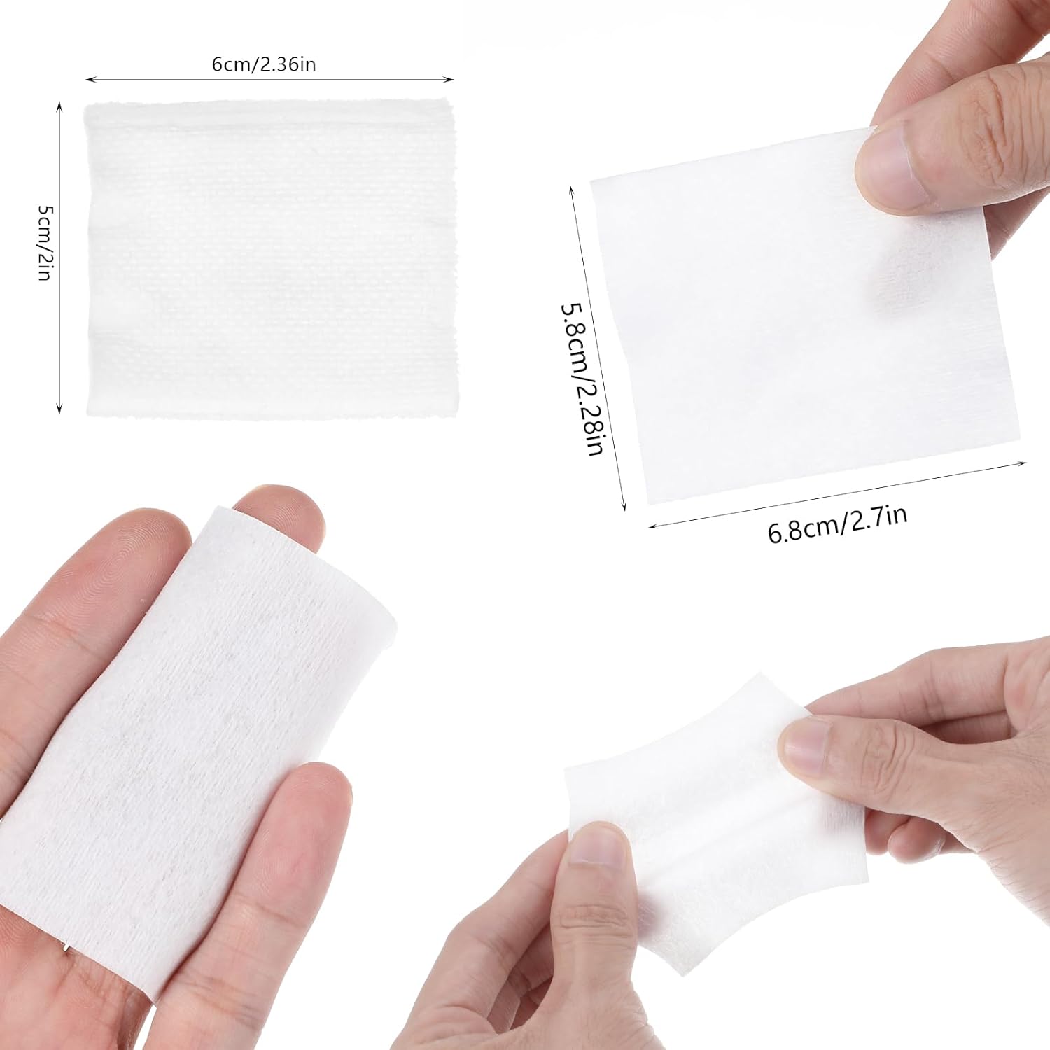 Perfect Size and Ample Quantity: Each cotton pad measures 2.36 inches x 1.96 inches (60mm x 50mm), offering the perfect size for various uses. The pack includes 100 thick pieces and 400 thin pieces, ensuring you have an ample supply for all your skincare and makeup needs.