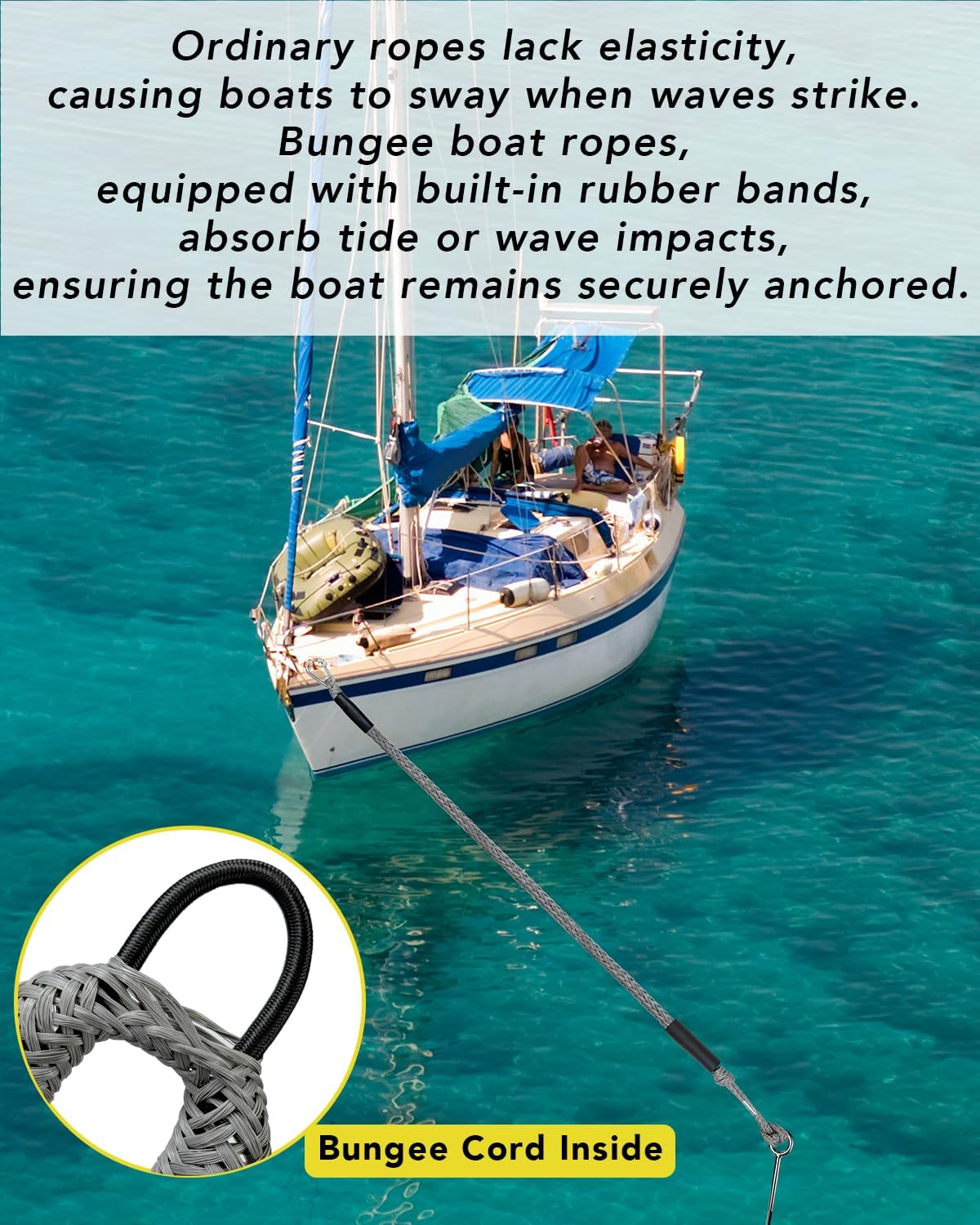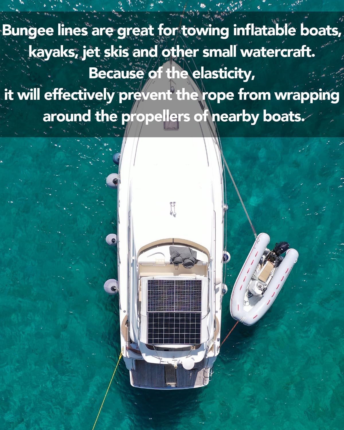 【Introducing Iririi Bungee Rope】 – the simple and effective solution for quick and secure docking of your fishing boat, pontoon, kayak, Seadoo Jet Ski, Yamaha WaveRunner or other PWC to docks, cleats, and pylons. With adjustable loops and sliders at each end, this rope can be easily attached and removed without tying any knots. Plus, its marine-grade 316 stainless steel carabiner at one end even without any experience can be quickly connecting to loops or metal eyes in 7 seconds