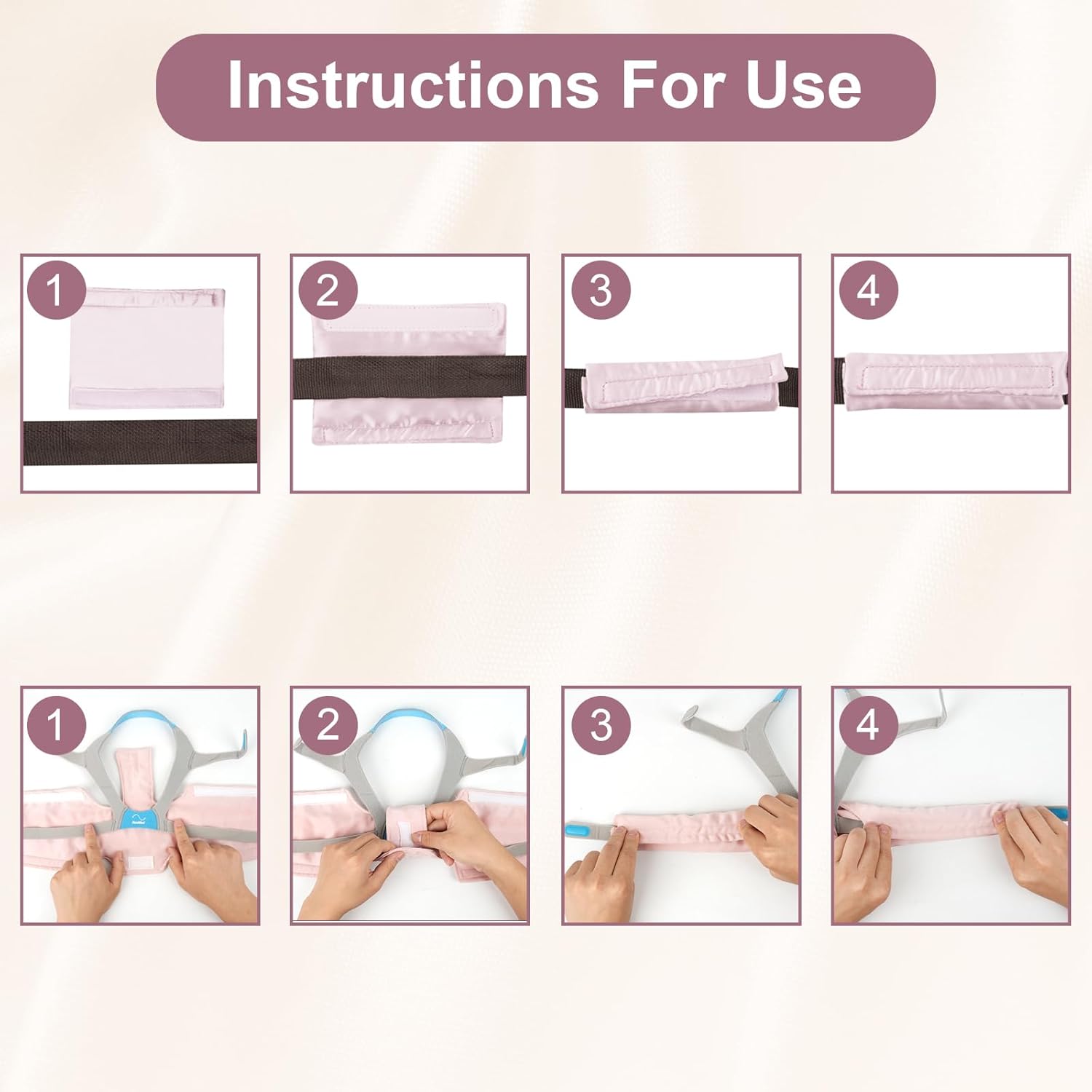 Skin Protection and Irritation Prevention: Strap covers serve as a crucial barrier between the mask’s headgear straps and the user’s skin. This protective layer helps prevent skin irritation, chafing, and pressure sores, particularly important for individuals with sensitive or prone-to-irritation skin. To cushion and protect the face and neck, reducing discomfort and irritation caused by gravity of the headgear straps and red marks caused by the headband. By reducing skin-related issues, users can experience more comfortable and uninterrupted sleep