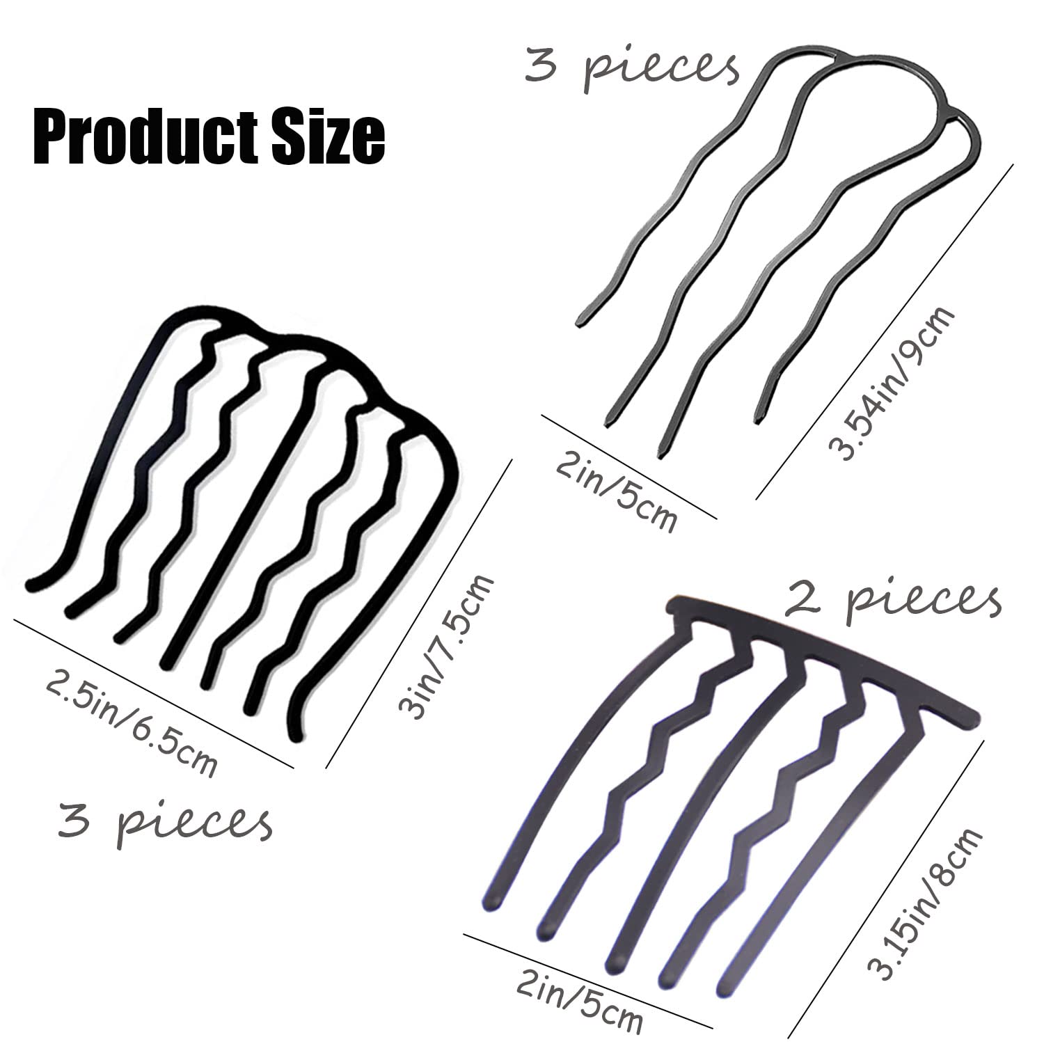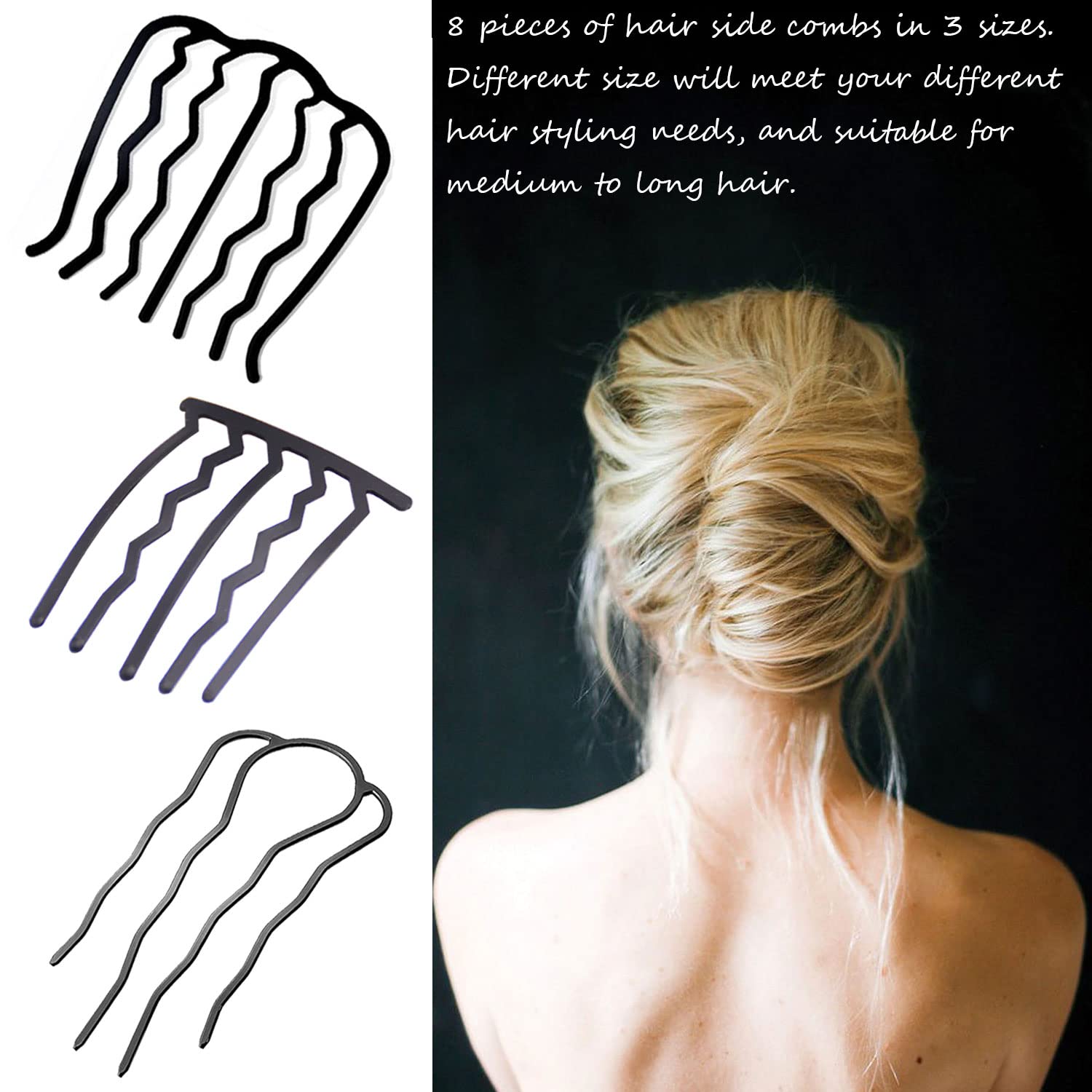 【Reliable Material】Our updo hair accessories are made of high-quality metal with a black coating on the surface, which will be comfortable to touch and not easy to fade.The u-shaped design and wave-shaped comb teeth can help you design your hairstyle, it is firm and non-slip when used.