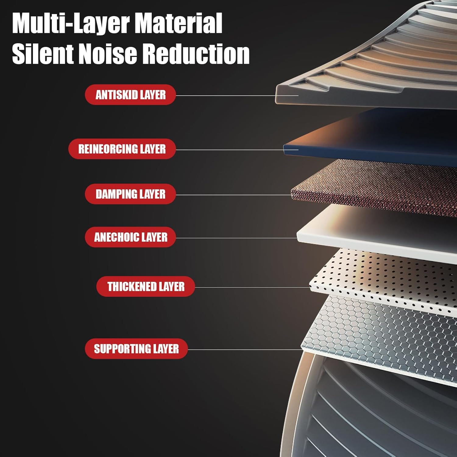【Silent Noise Reduction】Multi layer material mute noise reduction. Anti skid layer, reinforcement layer, damping layer, noise reduction layer, support layer.Silencing silo design, built in strong spring, automatic springback, comfortable and safe movement. Arc top design, multilayer materials, thickened load bearing structure.