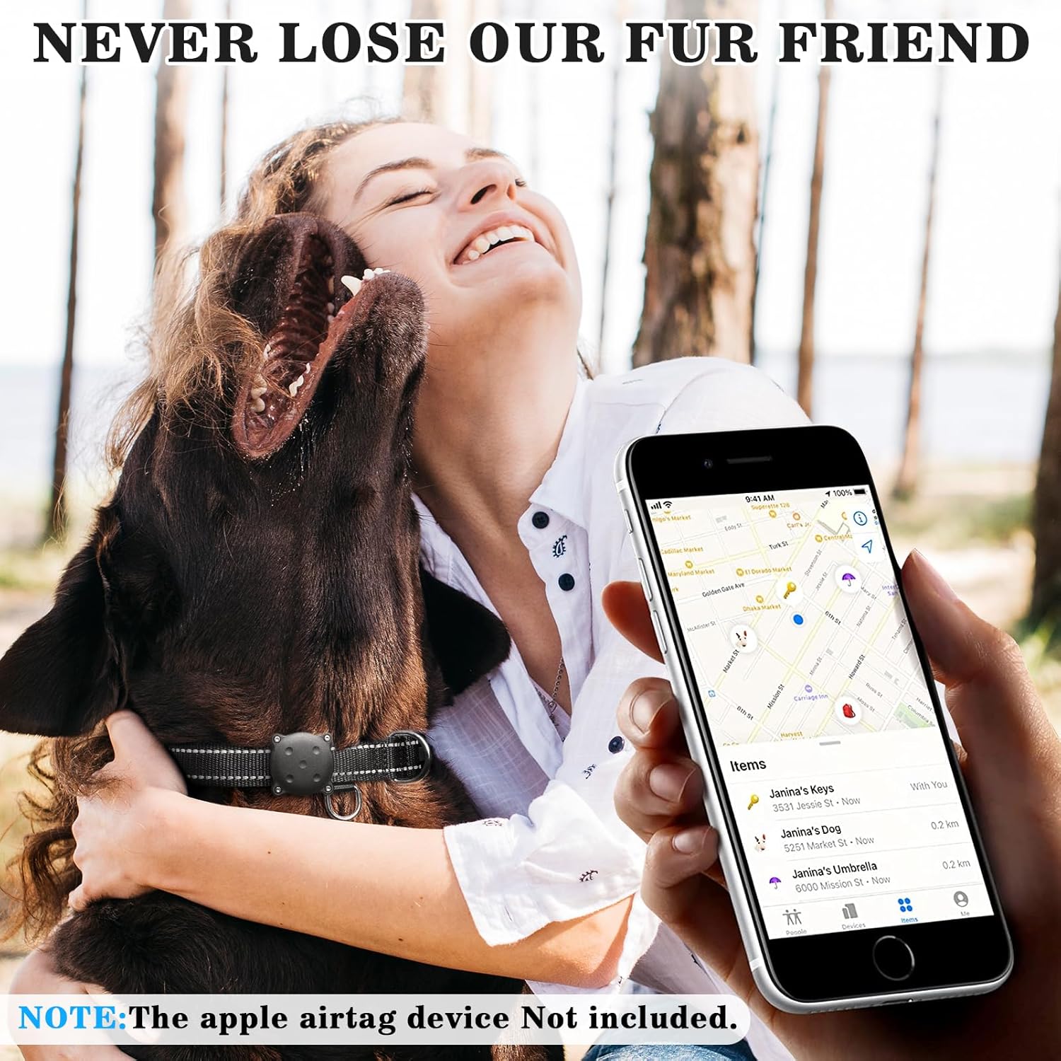 Designed For AirTag GPS:This is a dog collar and airtag holder set witch fits airtag gps tracker perfectly.Useing airtag to track our fur friend is a wise way to prevent losing our family member.NOTE:THE AIRTAG DEVICE NOT INCLUDED.