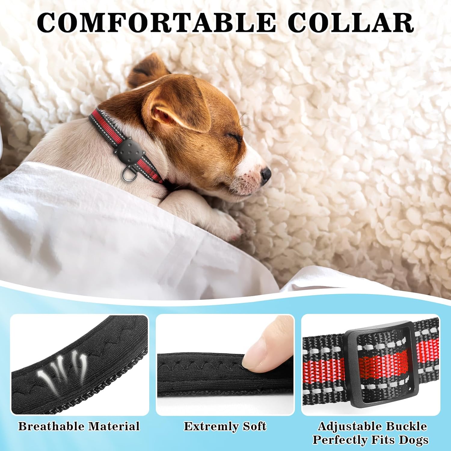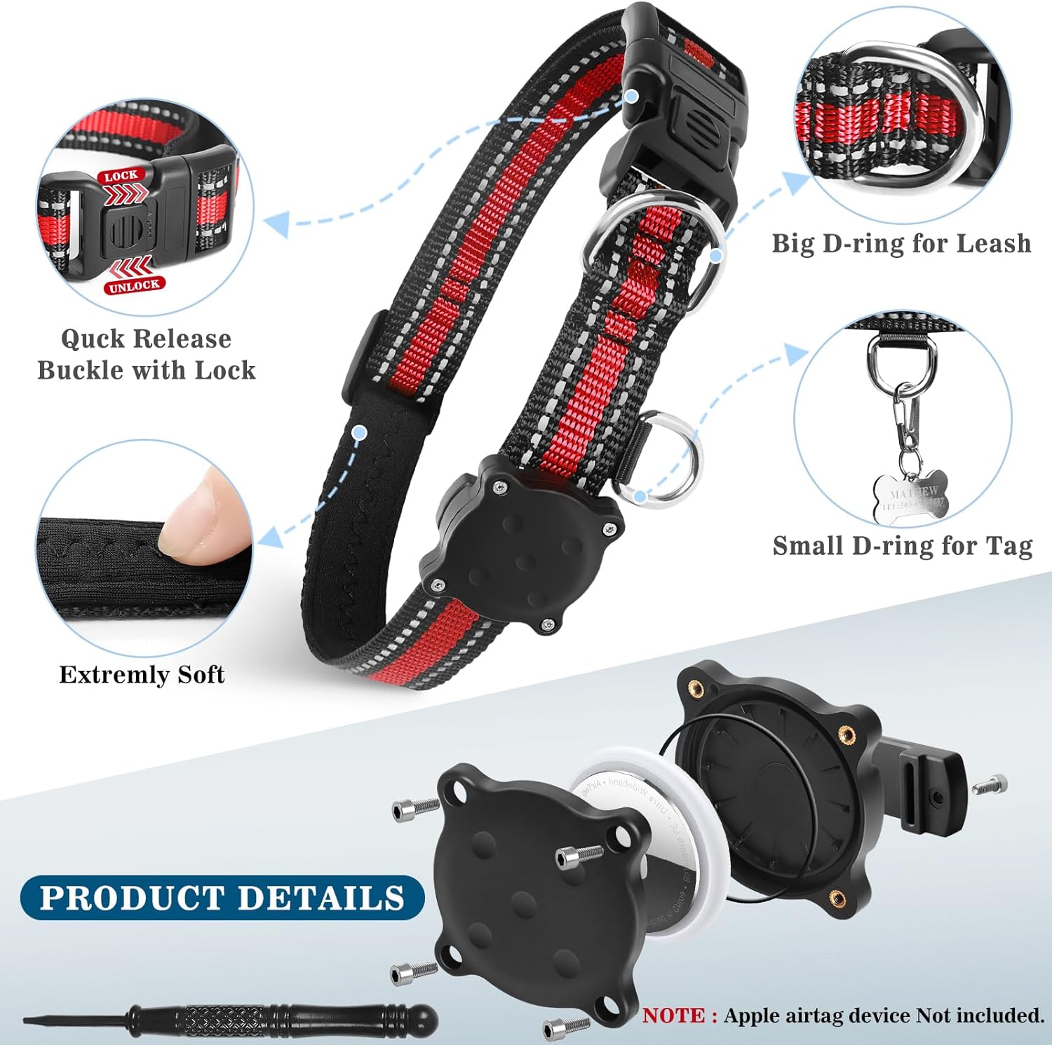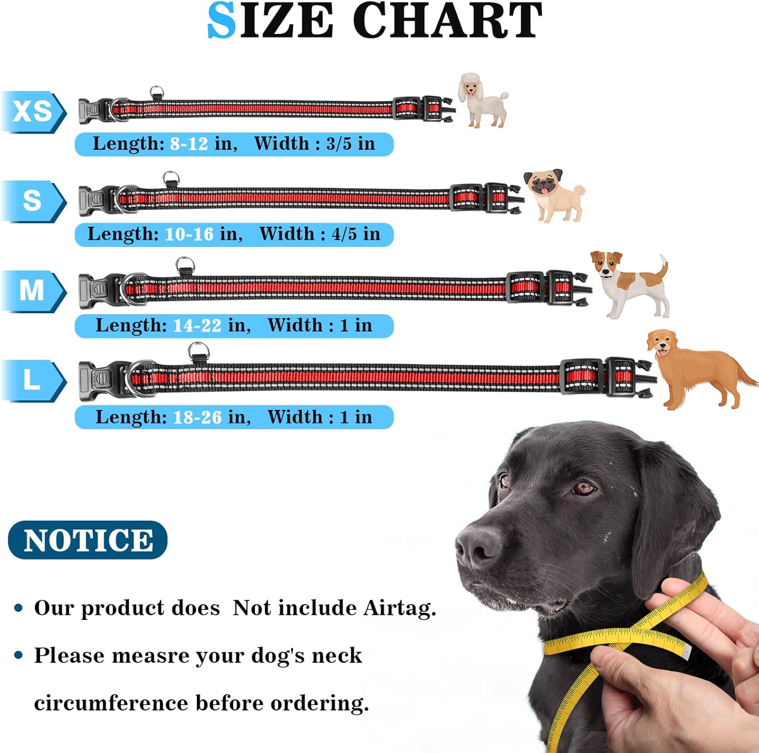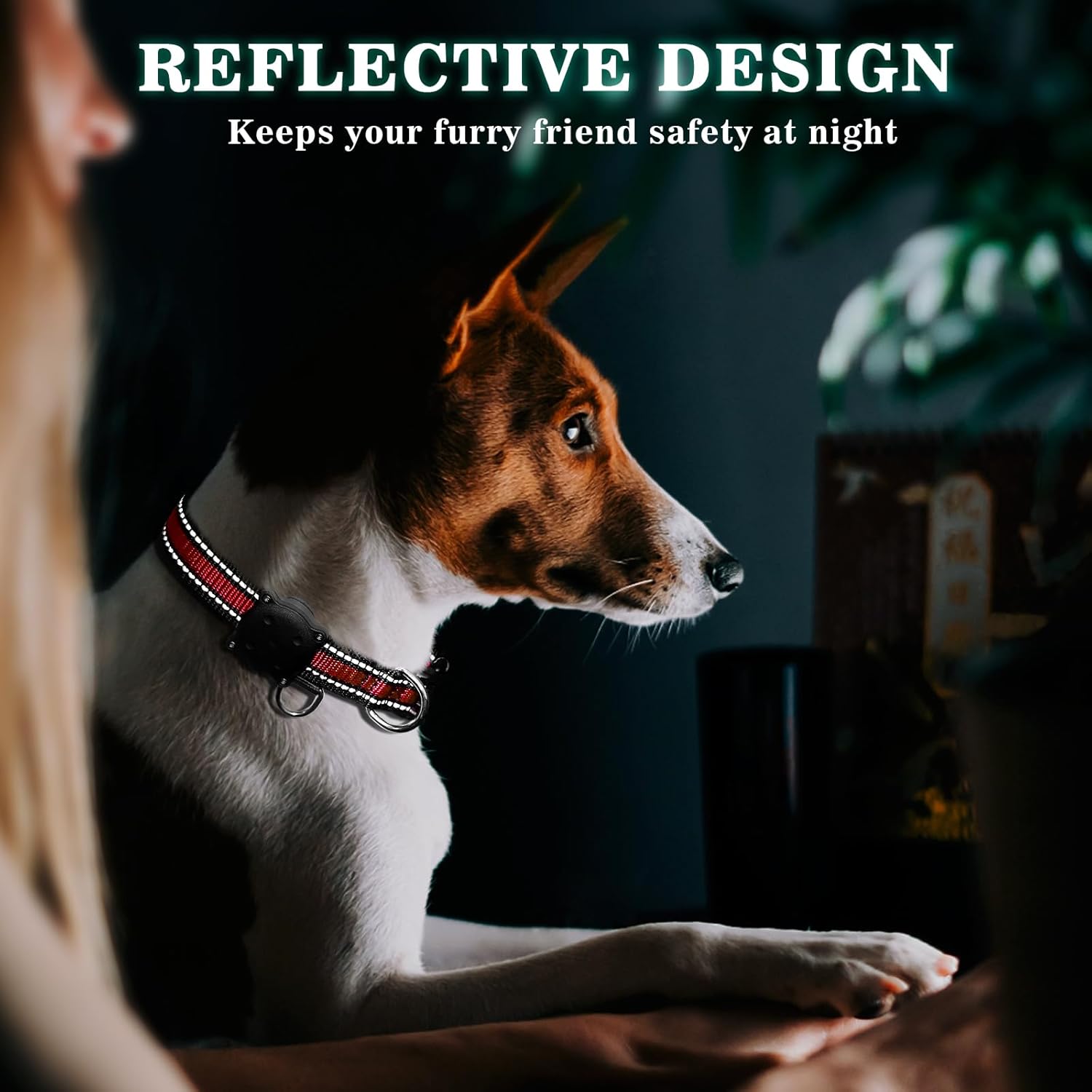 Airtag Dog Collar,MOOGROU Waterproof Air Tag Dog Collar Holder with Padded Nylon Pet Collar for Airtag GPS Tracker,Durable Airtag Case with Reflective Collar for Small-Large Dogs Red XS
