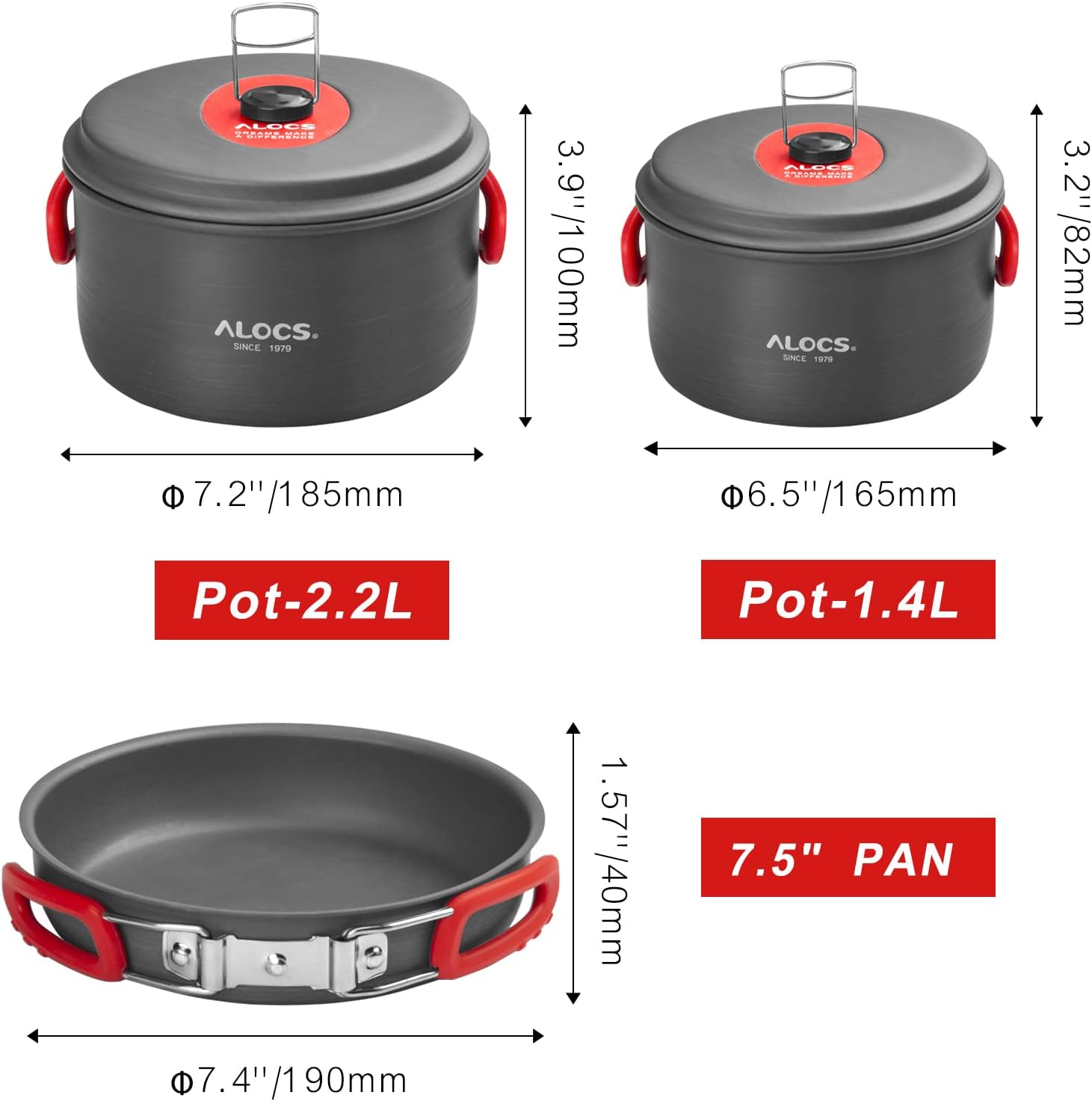 HEAT-INSULATION SILICONE HANDLES & GASKET: ALOCS camp cooking set comes with thermally insulated plastic handles keep your fingers safe from the heat, while the anti-slip design offers a firm and comfortable grip. Large silicone gasket effectively isolates heat, preventing burns.