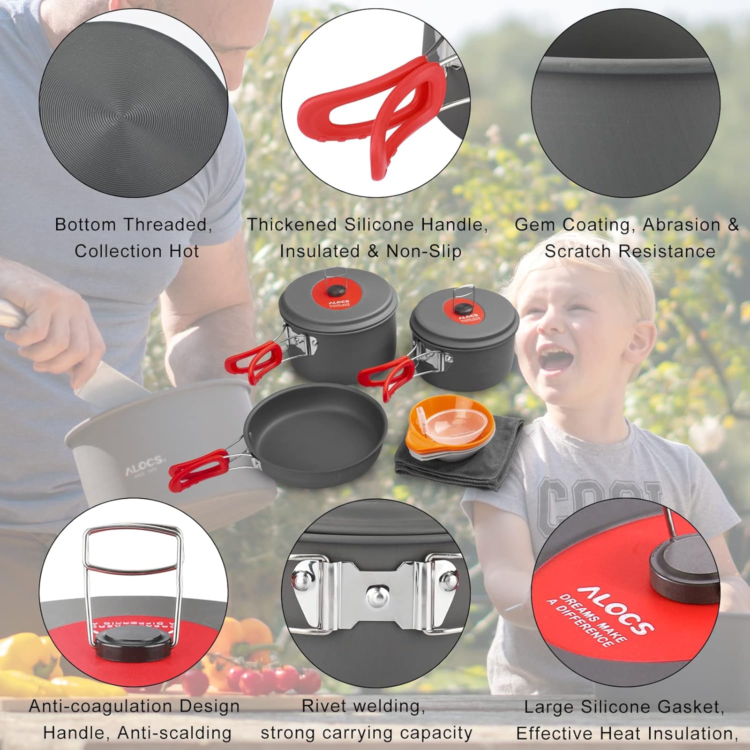 Alocs Camping Cookware, Portable Camping Essentials with Accessories, Camping Gear Camping Cooking Set for Outdoor Cooking, Backpacking, Hiking and Picnic.
