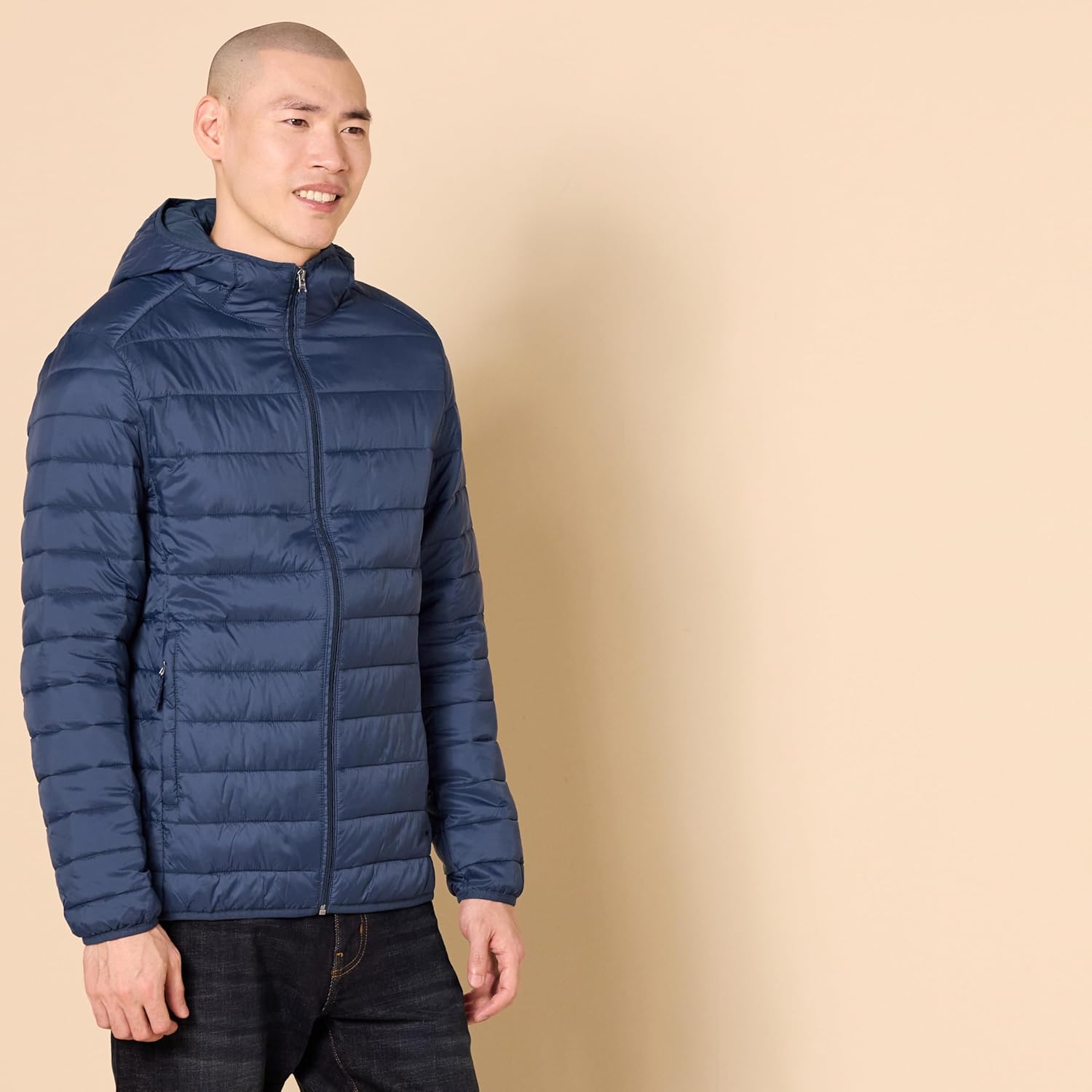 Amazon Essentials Men’s Lightweight Water-Resistant Packable Hooded Puffer Jacket