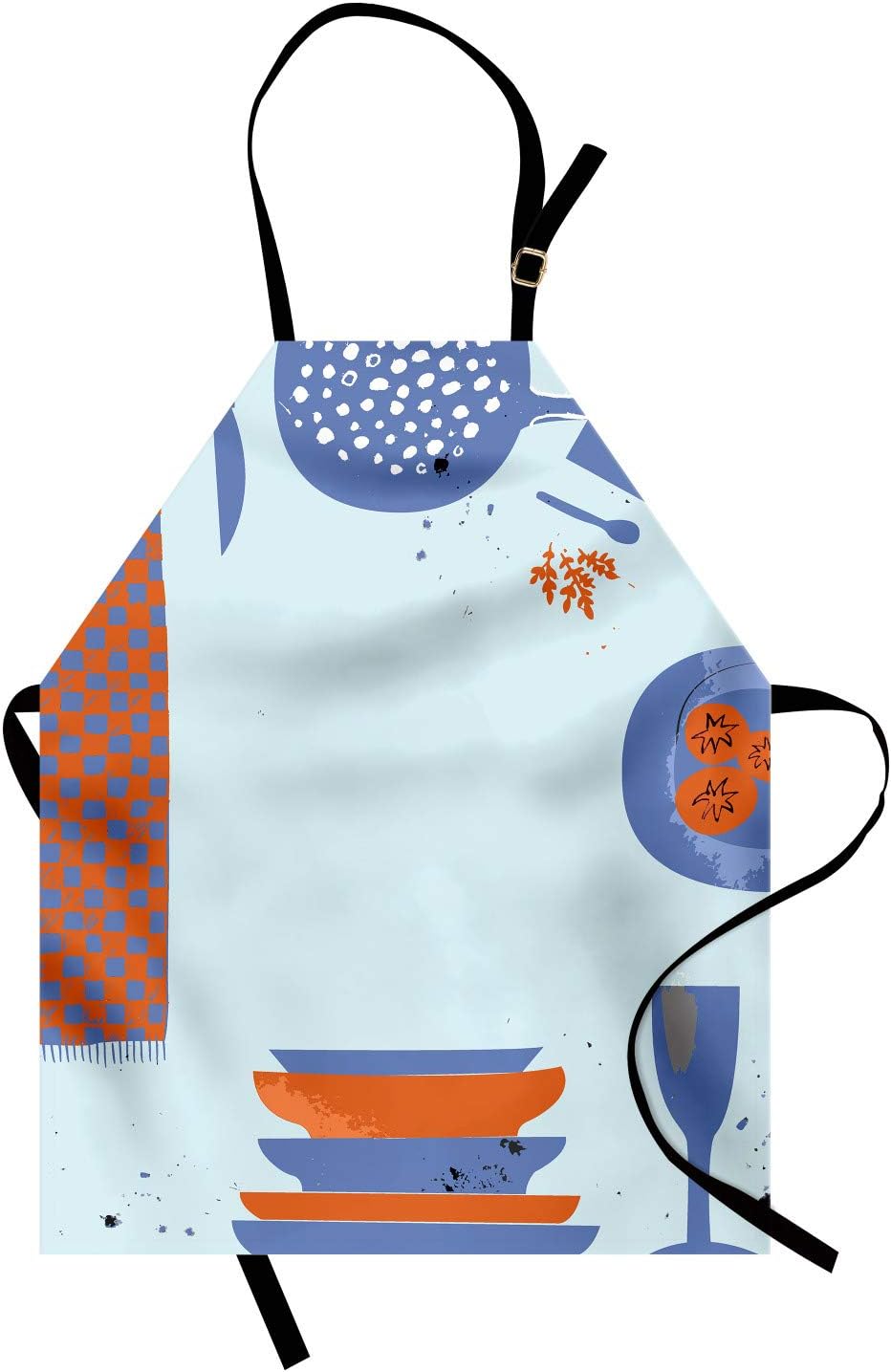 Ambesonne Chef Personalized Apron, Traditional Cuisine Foods Meals Theme Modern Minimal Kitchen Equipment, Unisex Kitchen Bib with Adjustable Neck for Cooking, Adult Size, Dark Orange