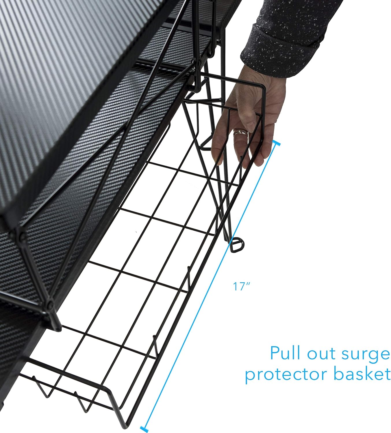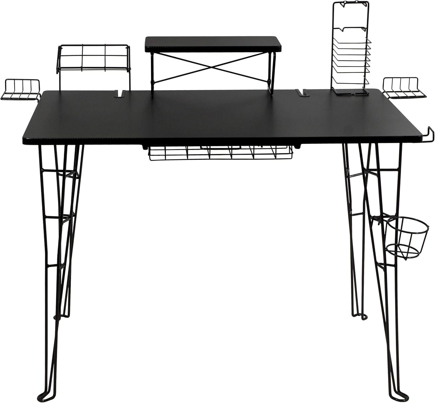 Atlantic Original Gaming Desk – Carbon-Fiber Laminated Desktop, Heavy-Duty Steel-Wire Legs, Elevated Monitor Platform, Tablet/Phone Stand, Speaker Stands, Video Game Gadget Rack, PN 33935701 – Black